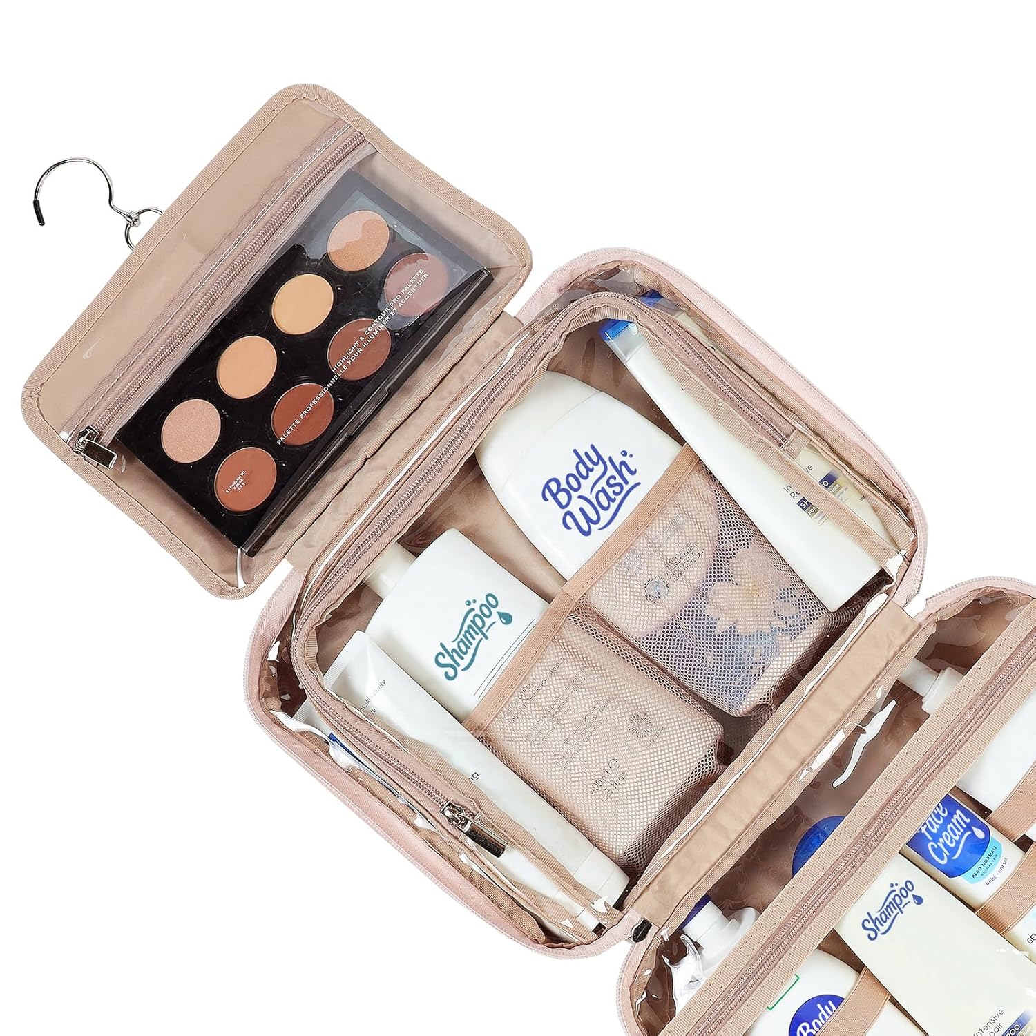 - STURDY HOOK DESIGN - Special U-shape zippers design, take out the toiletries or zip up the toiletry case quickly. No more unpacking, digging through one bag, and laying your stuff on the bathroom counter. Just hang the bag up, grab what you need, and put it back in it