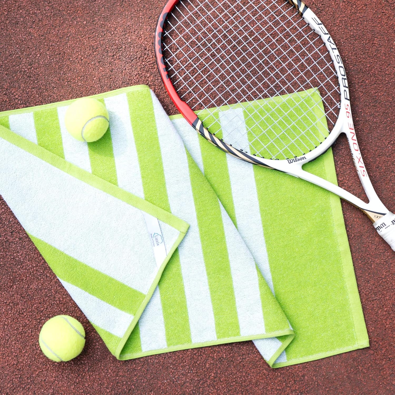 - STYLISH AND CLASSICAL DESIGN: Luzia striped workout towels are durable enough for any gym setting, but stylish enough to take to the pool, tennis, golfing, and yoga studio with their pairing of rich and vivid colors with white stripes.