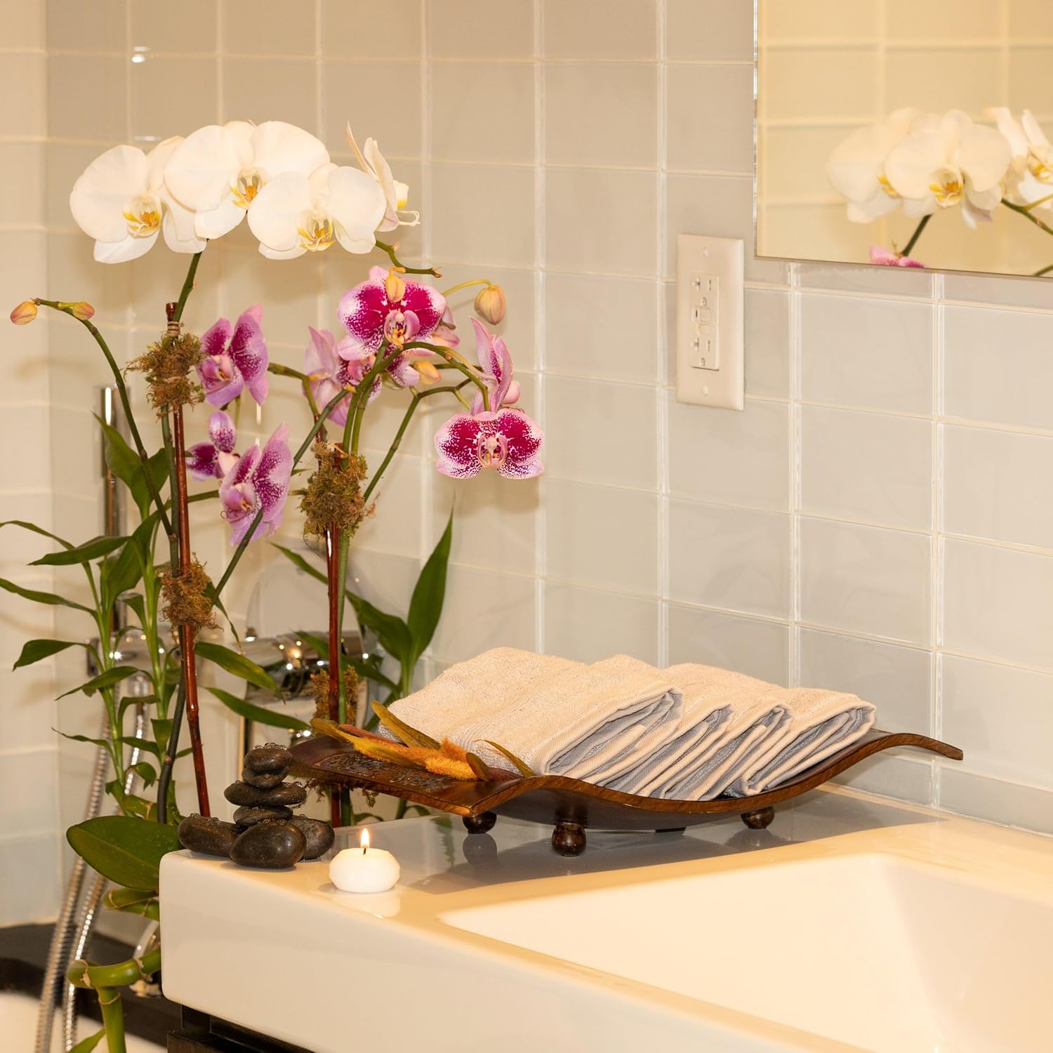 - Extremely soft and gentle on skin while maintaining high absorbency and durability. Odor-resistant, super fluffy, and quick drying. Specially designed to resist common sources of fading, discoloration, and snagging. Dense-loop terry dobby design with elegant borders and hemmed edges make these great guest bathroom décor or gifts. May be used in bathroom, kitchen, or the gym. Smaller pieces are great for dishes, newborn babies or infants, erasing makeups or cleansing body in a nice shower.