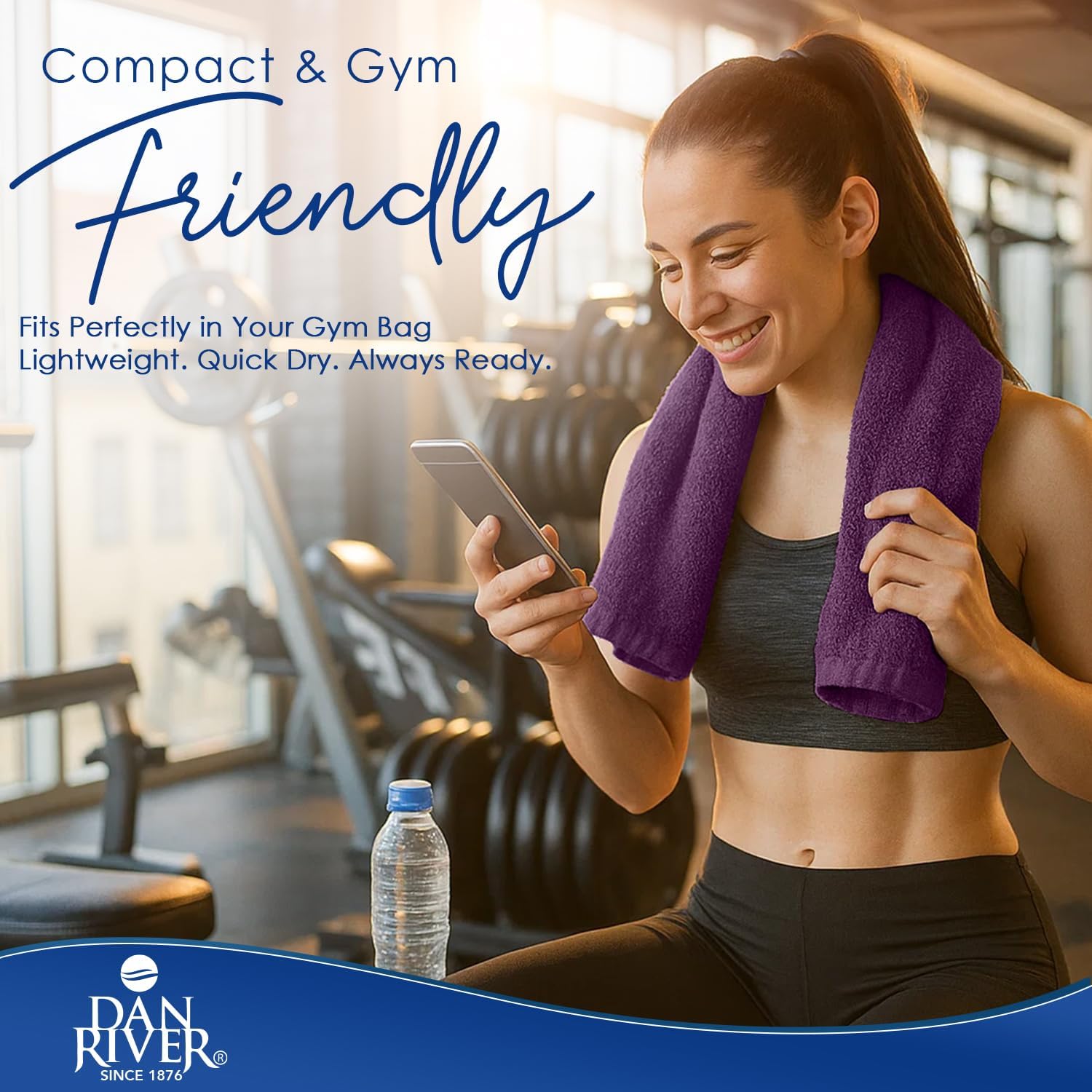 DAN RIVER 6-Pack Premium Hand Towels (16x28 Inches) - 100% Cotton, Ultra Soft, Lightweight, Highly Absorbent Towels for Bathroom, Spa, Gym, Salon, Hotel, and Travel - 550 GSM โ Purple Passion