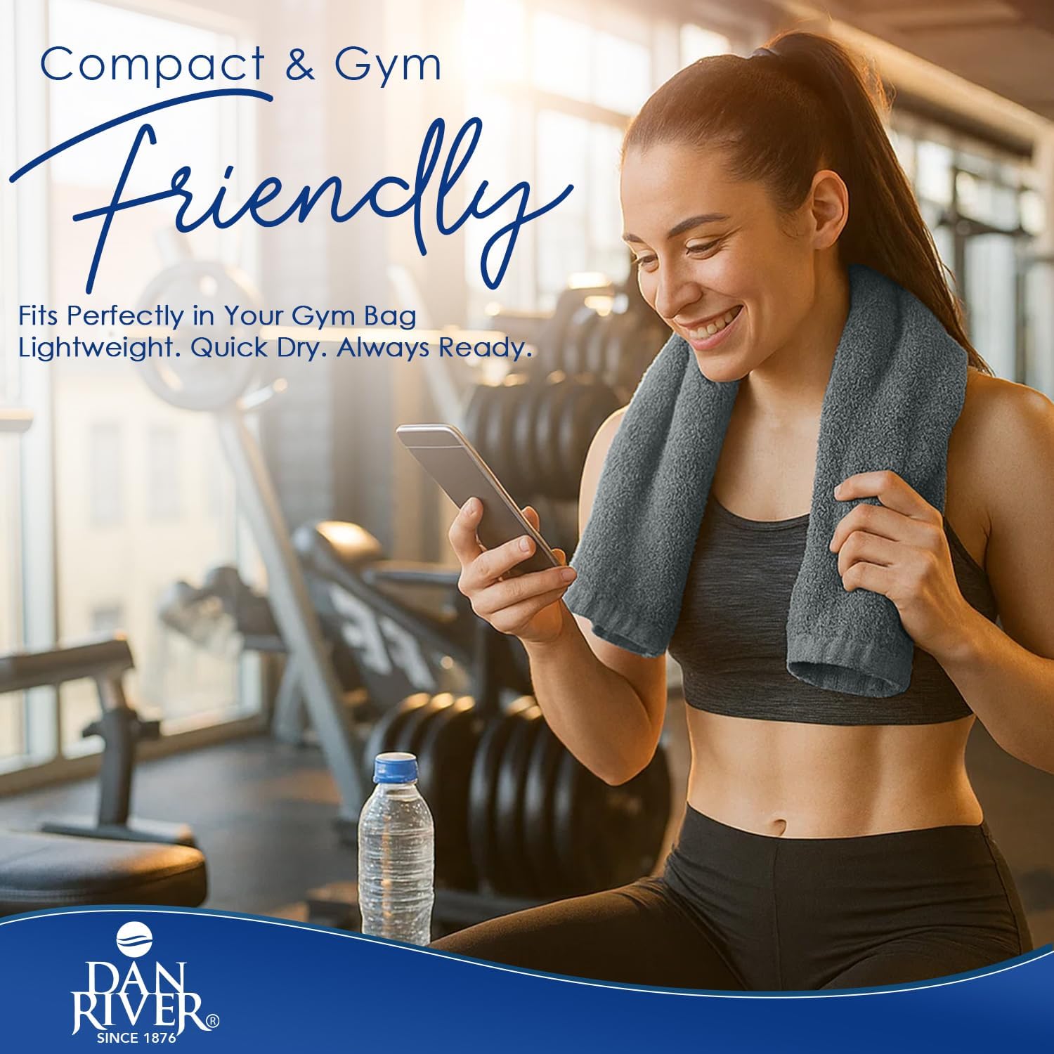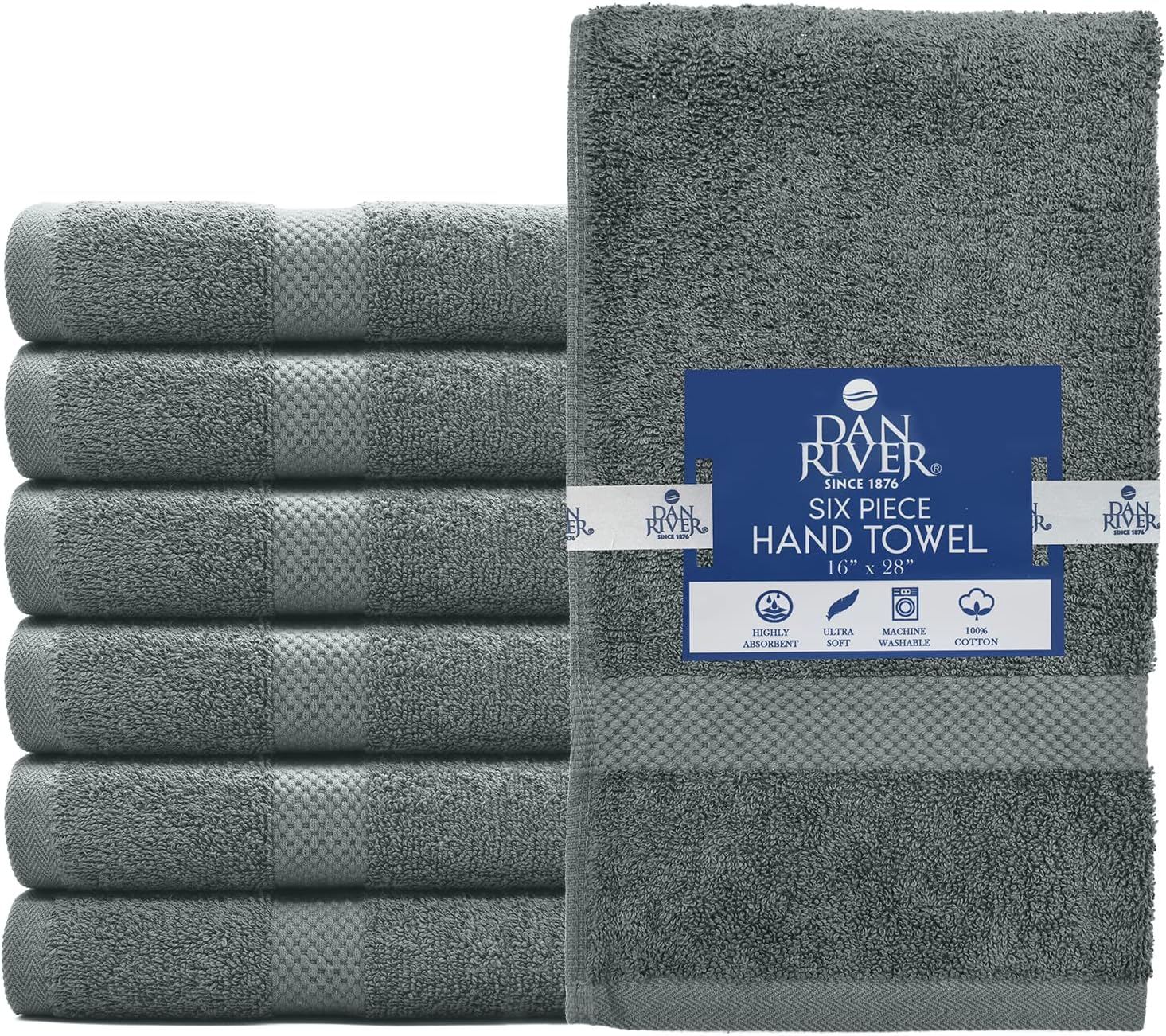 DAN RIVER 6-Pack Premium Hand Towels (16x28 Inches) - 100% Cotton, Ultra Soft, Lightweight, Highly Absorbent Towels for Bathroom, Spa, Gym, Salon, Hotel, and Travel - 550 GSM โ Gray