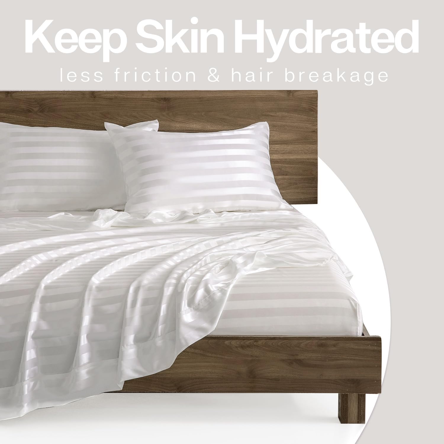 MR&HM Satin Pillowcase for Hair and Skin, Silk Satin Pillowcase 2 Pack, Standard Size Pillow Cases Set of 2, Silky Pillow Cover with Envelope Closure (20x26, Ivory Striped)