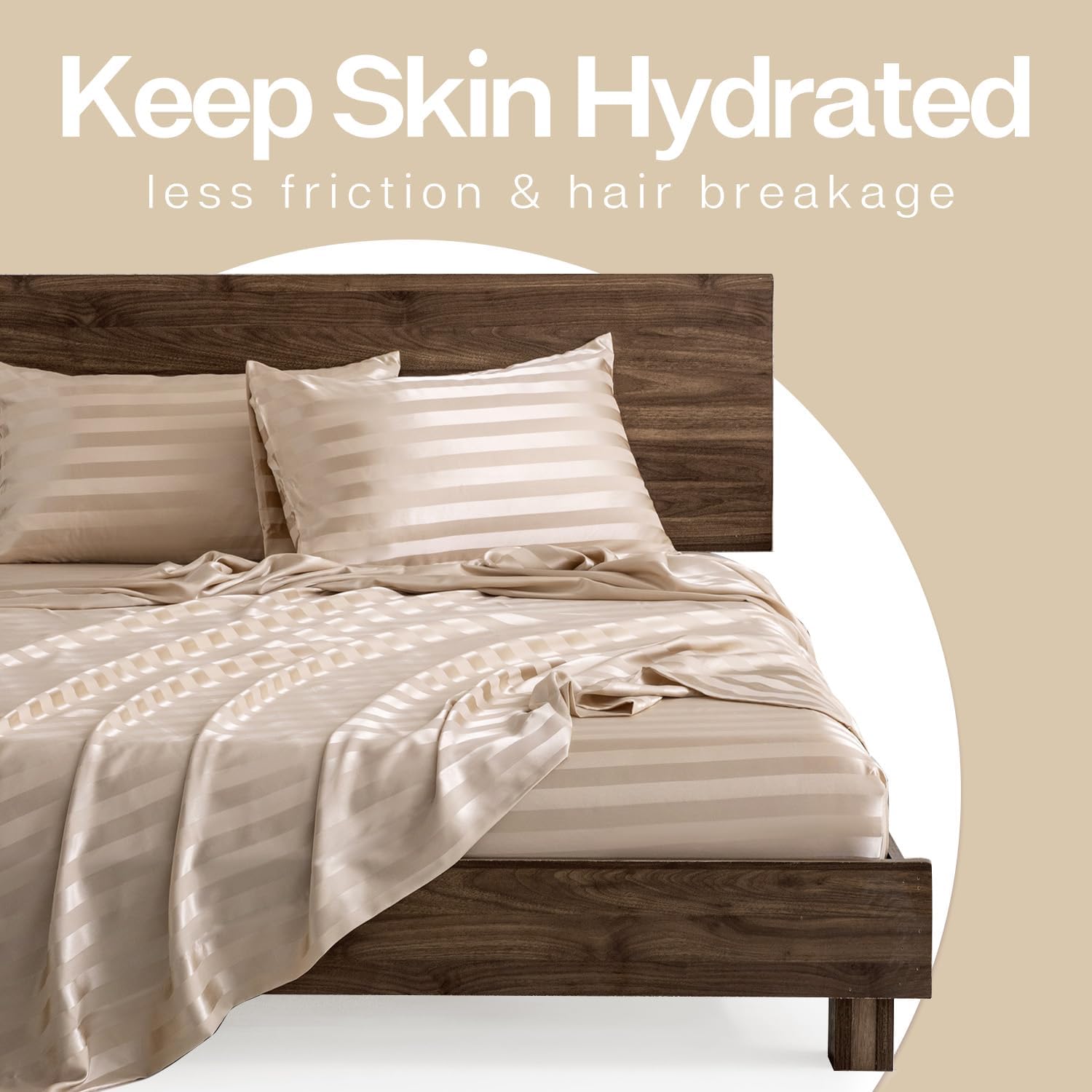 MR&HM Satin Pillowcase for Hair and Skin, Silk Satin Pillowcase 2 Pack, Standard Size Pillow Cases Set of 2, Silky Pillow Cover with Envelope Closure (20x26, Champagne Striped)