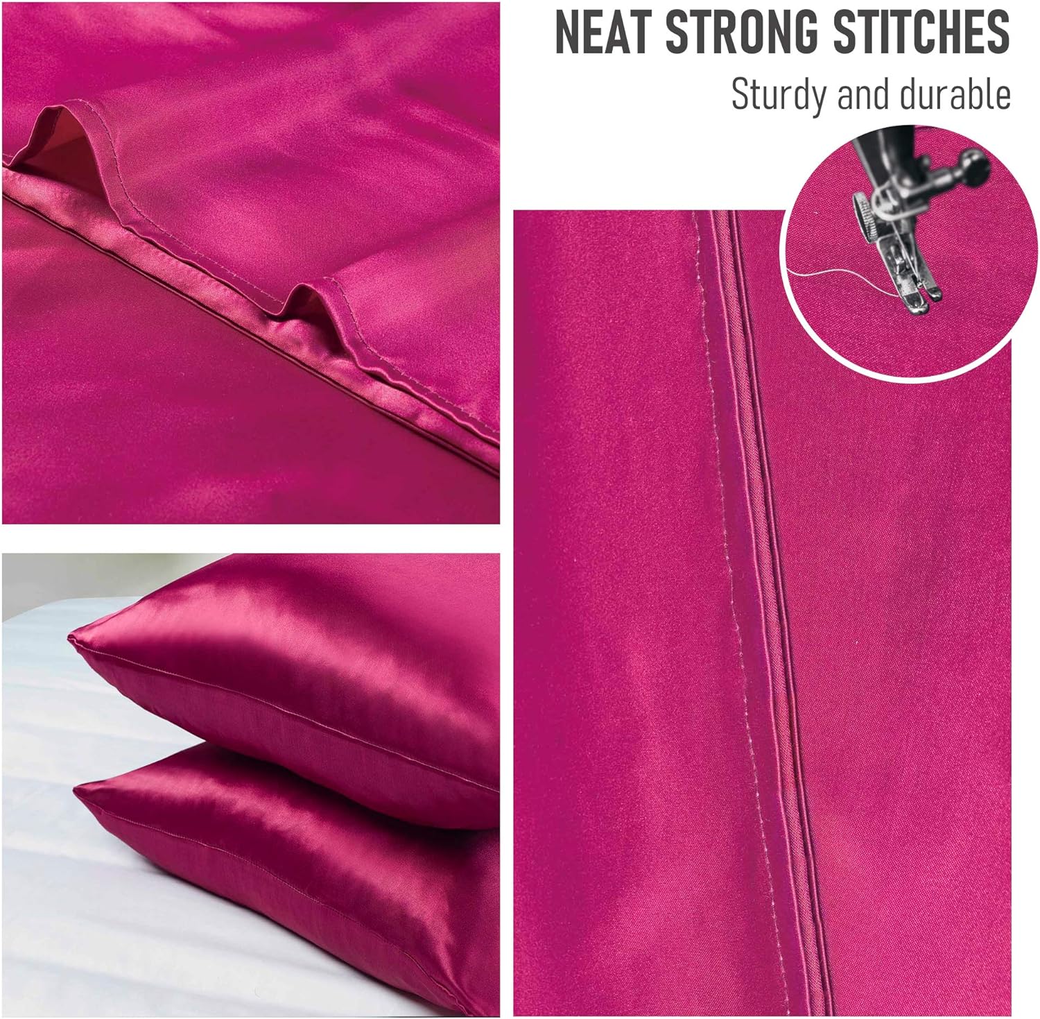 - COMFORTABLE AND DURABLE: These cooling pillowcases utilize 100% polyester satin to provide a smooth appearance and exceptional longevity. The satin fabric makes you cool in the summer and warm in the winter, enjoy sleep throughout the year