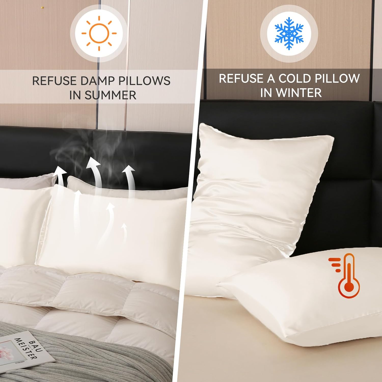 • Cooling & Comfort All Year Round: Say goodbye to sweaty nights and cold pillow discomfort. Tyfitb satin pillowcases regulate temperature, keeping you cool in the summer and warm in the winter. Ideal for hot sleepers, those suffering from night sweats, and anyone looking for a comfortable sleep experience. A great alternative to cotton and silk for year-round comfort.
