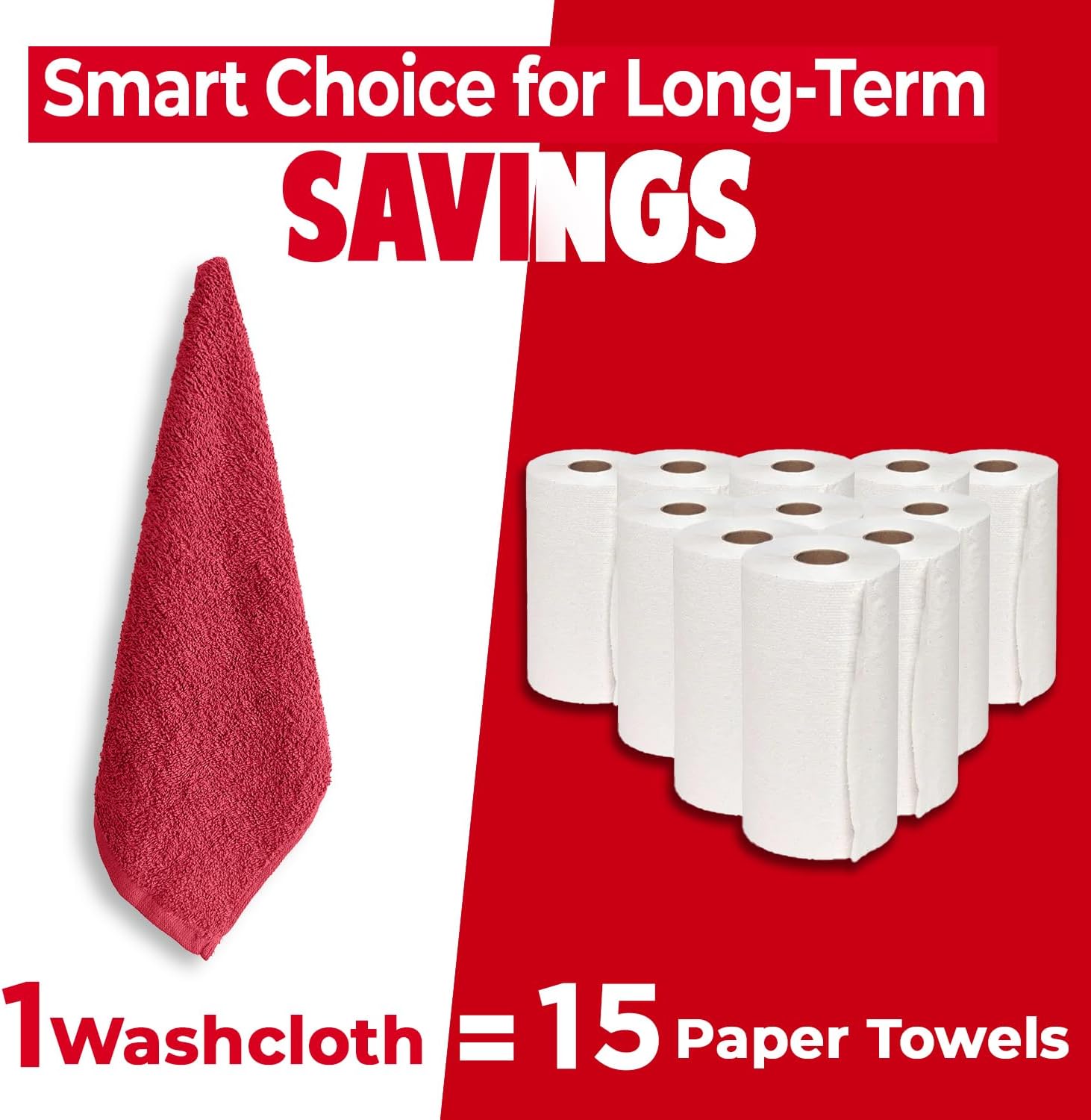 DAN RIVER 100% Cotton Wash Cloths 24 Pack [12x12] Soft & Absorbent Bath wash Cloths, Gym, Hotels & Spa Perfect for Everyday Use Fingertip Towels, Red