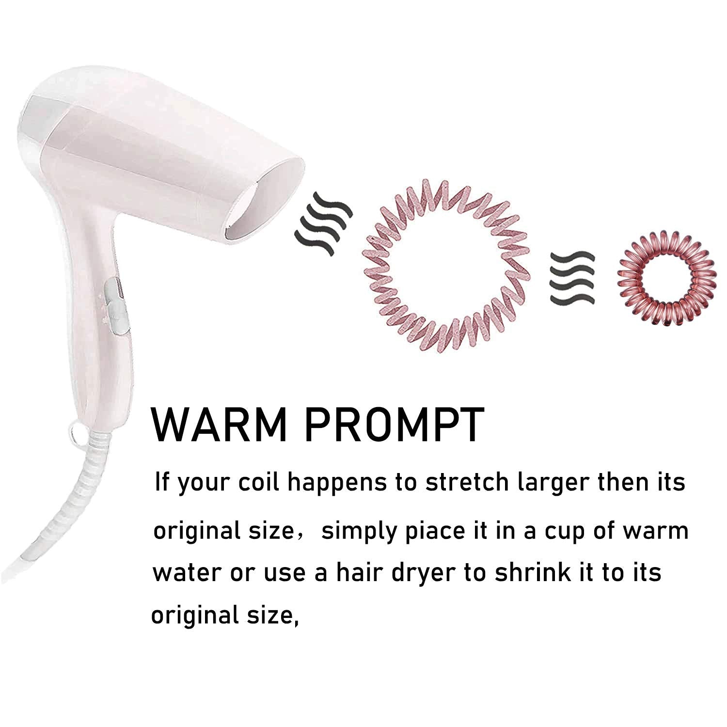 - High Quality Material: This hair elastics for women made of waterproof skin-friendly TPU, which is soft, durable and flexible. These spiral hair ties for thick hair & hair coil ties not only fixed the hair firmly also not hurt for your hair.