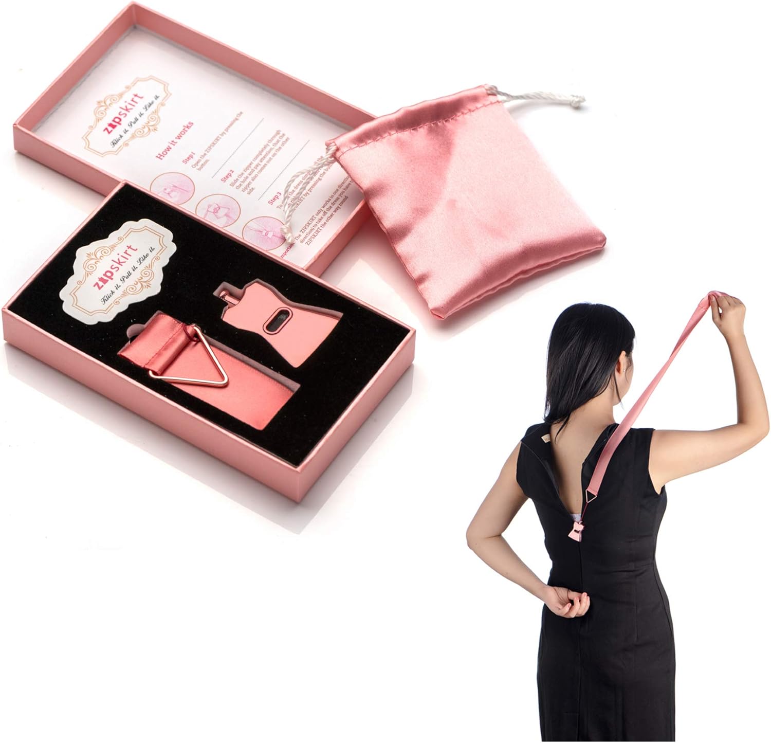- Easy to Use: Just Press the Switch—Guide the Zip Slider Through the Opening Until the Stop—Pull the Satin Ribbon.NOTE: Please Push the ZIPSKIRT to the Bottom to Ensure that the Zipper is Exposed as Much as Possible so that it Can be Firmly Grasped