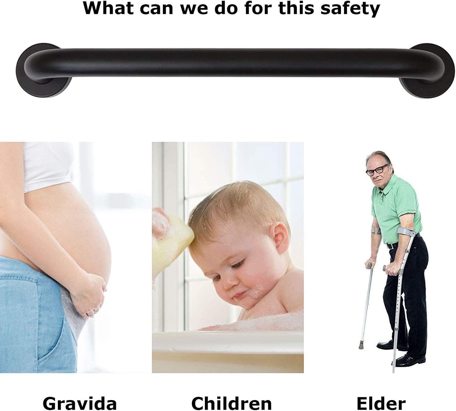 - Use iMomwee 24 inch extra long black safety grab bars in commercial and residential places as in the bathroom, kitchen, along stairways, swimming pool, laundry room,toilet, bathtub and shower safety grab Handrails for additional fall prevention, especially for the handicap, elderly, pregnant women and children. Not only apply to use as bath shower grab bar, but also can hold clothing,towel and etc.