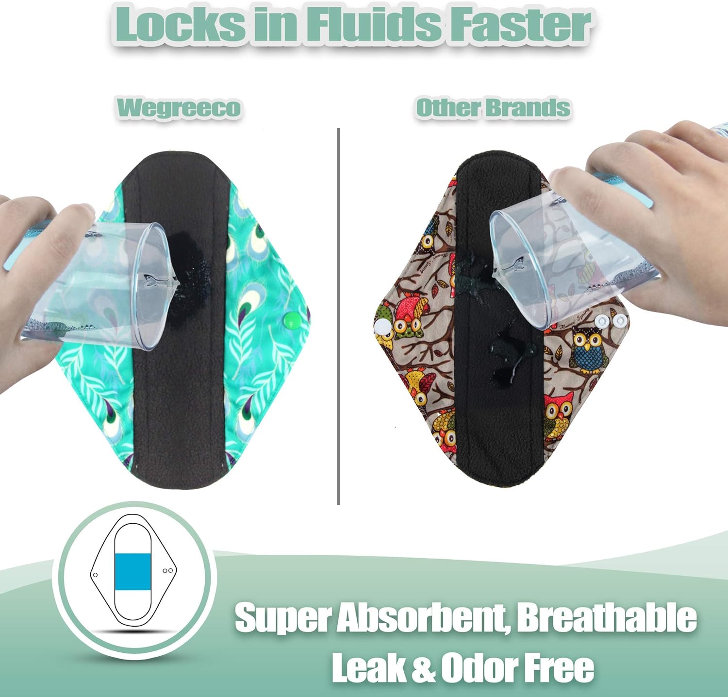 wegreeco Reusable Menstrual Pads - Reusable Sanitary Pads | Reusable Panty Liners | Soft Cloth Menstrual Pads - 6 Pack with 1 Cloth Mini Wet Bag (Large, Peacock