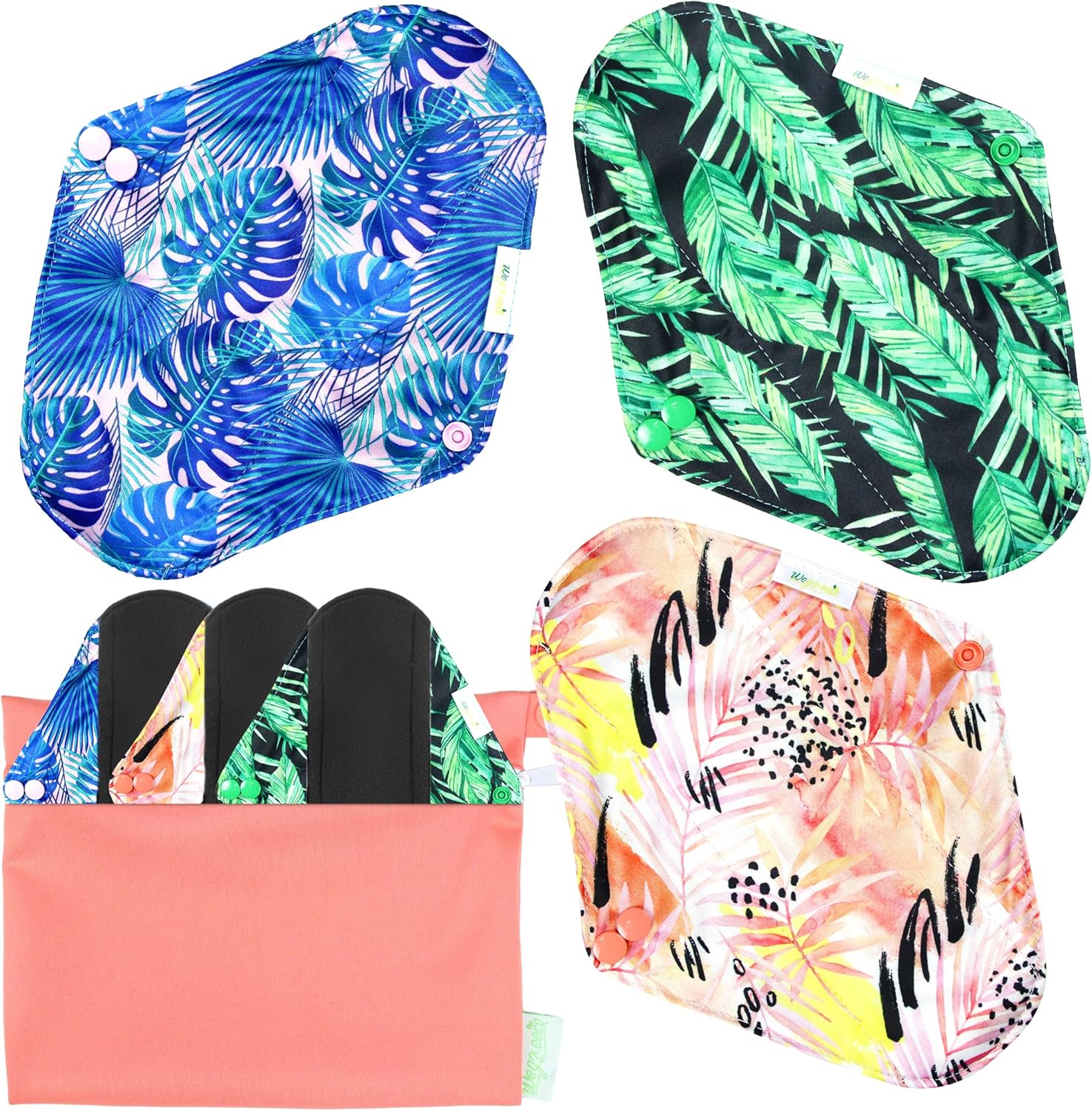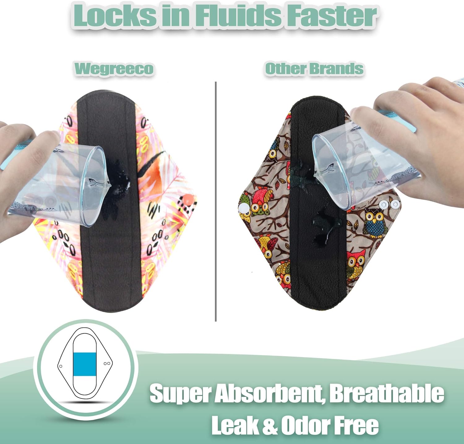 wegreeco Reusable Menstrual Pads - Reusable Sanitary Pads | Reusable Panty Liners | Soft Cloth Menstrual - 6 Pack with 1 Cloth Mini Wet Bag (Medium, Leaves