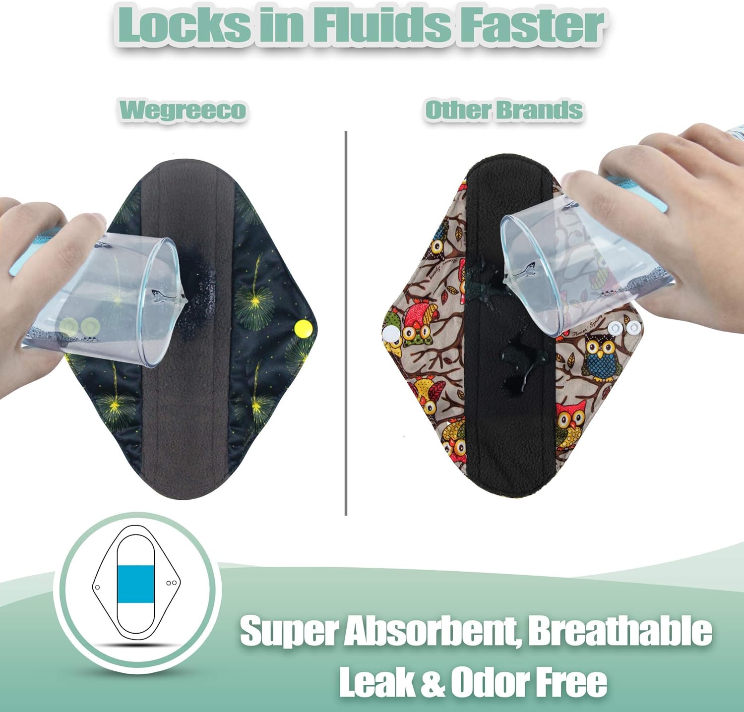 wegreeco Reusable Menstrual Pads - Reusable Sanitary Pads | Panty Liners | Soft Cloth Menstrual - 6 Pack with 1 Cloth Mini Wet Bag (Large, Dandelion