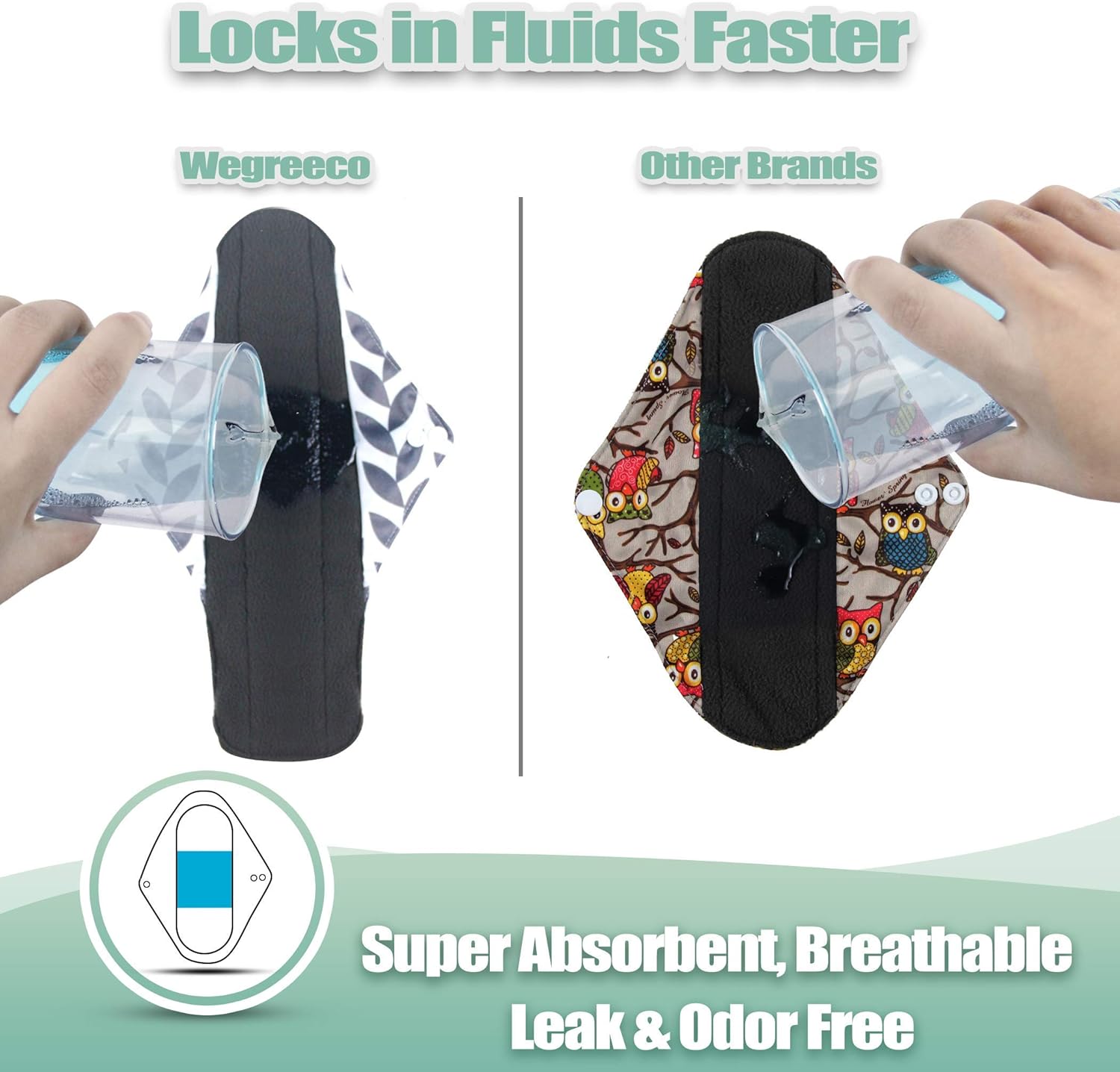Wegreeco Reusable Menstrual Pads - Soft Cloth Sanitary Pads | Panty Liners - 6 Pack with 1 Cloth Mini Wet Bag (X-Large, Luxury)