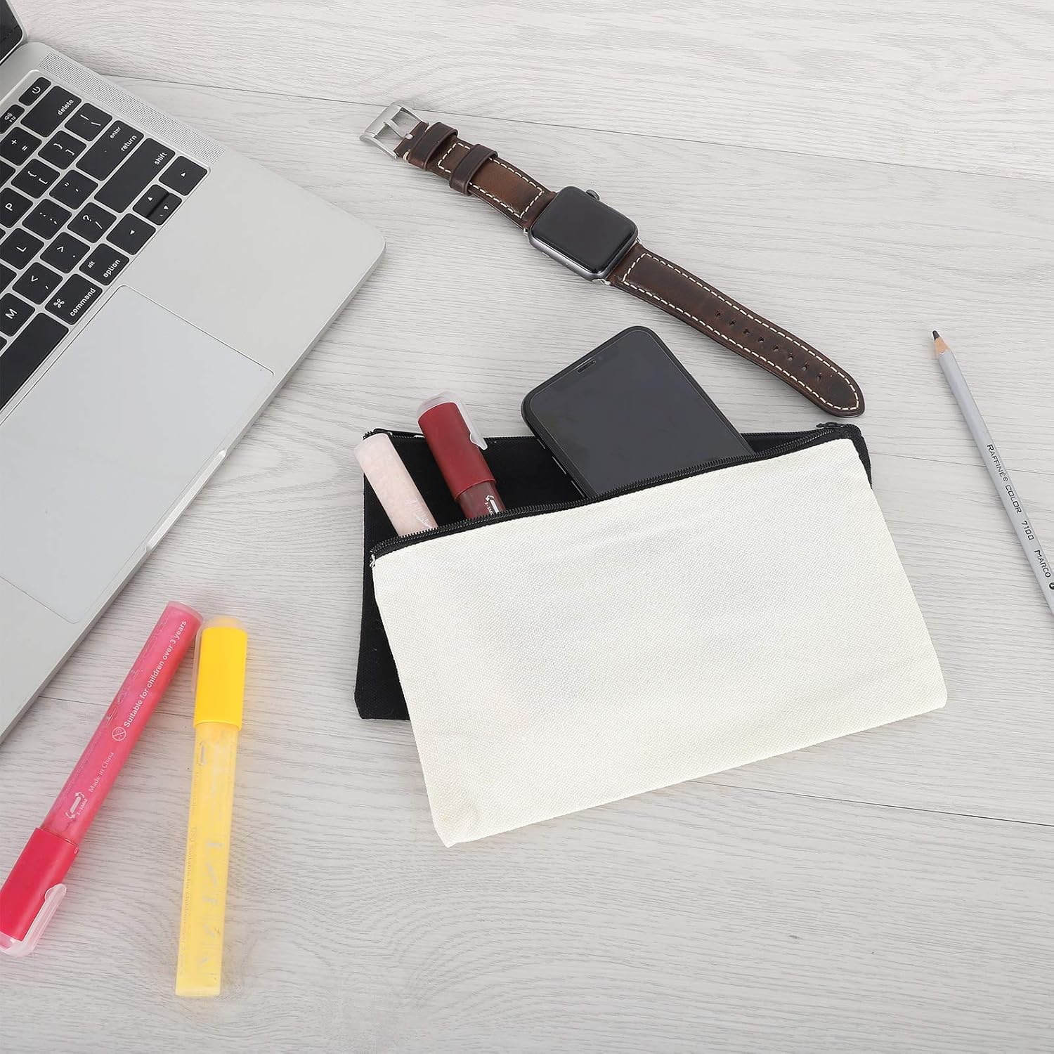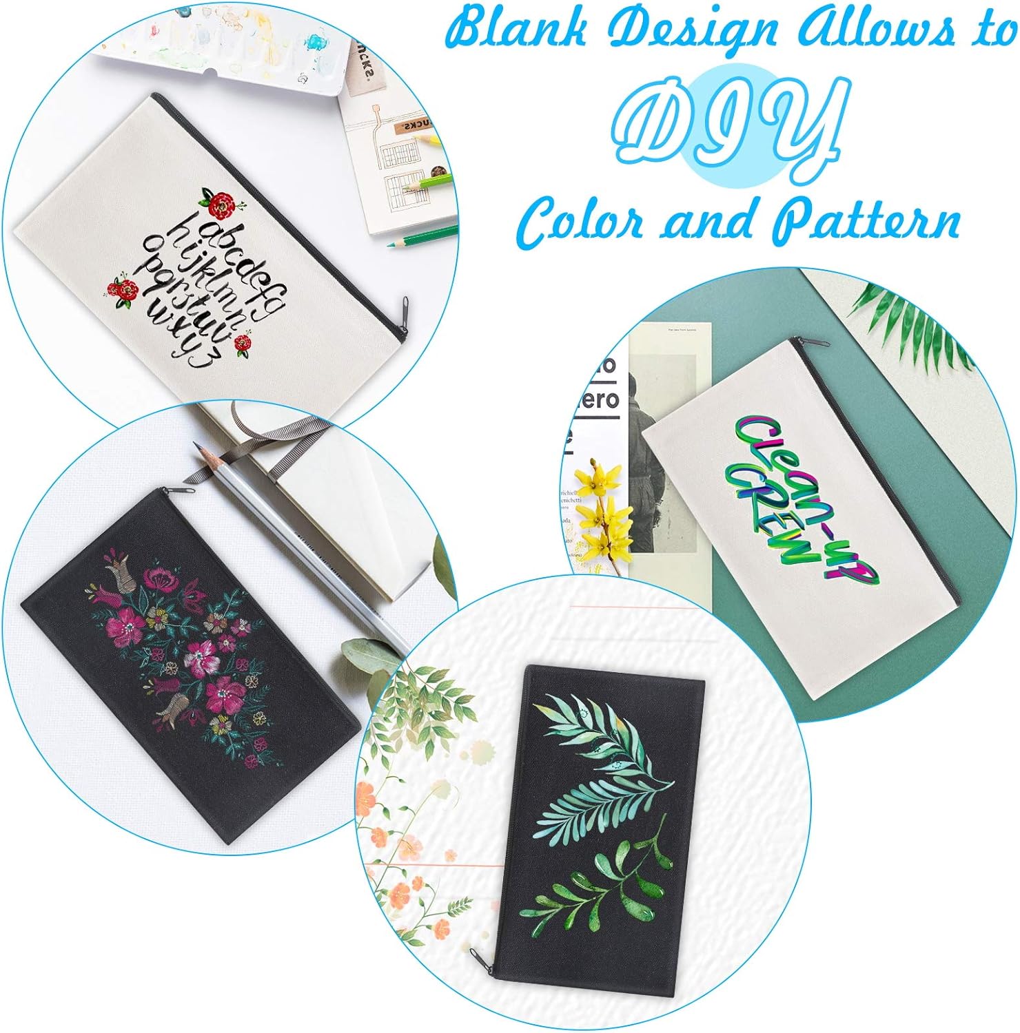 12 Pieces White Cotton Canvas Makeup Bag, Multipurpose Cosmetic Bag with Zipper Travel Toiletry Pouch, Blank DIY Craft Bag (White, S)