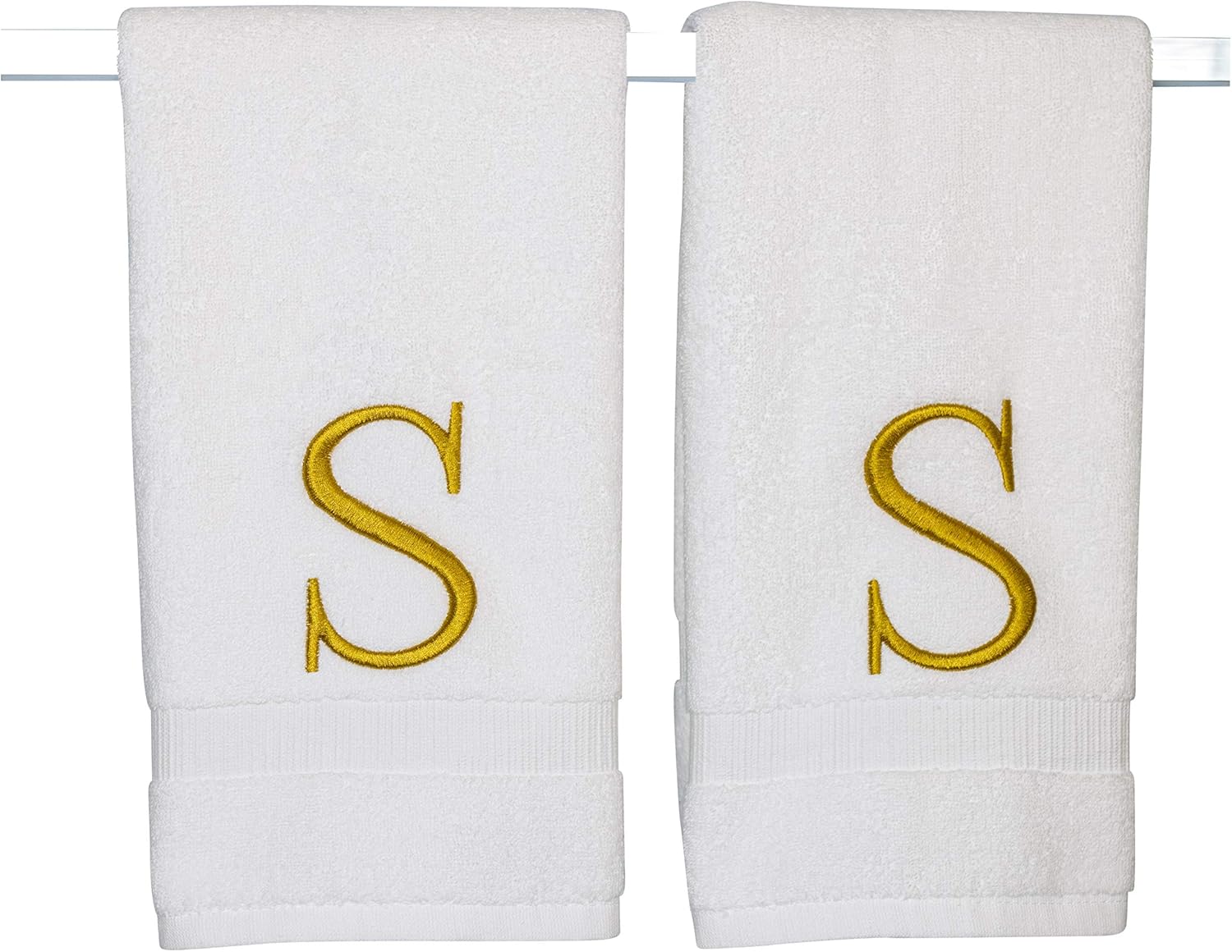 Monogrammed Hand Towels for Bathroom - Luxury Hotel Quality Personalized Initial Decorative Embroidered Bath Towel for Powder Room, Spa - GOTS Organic Certified - Set of 2 Gold Letter S