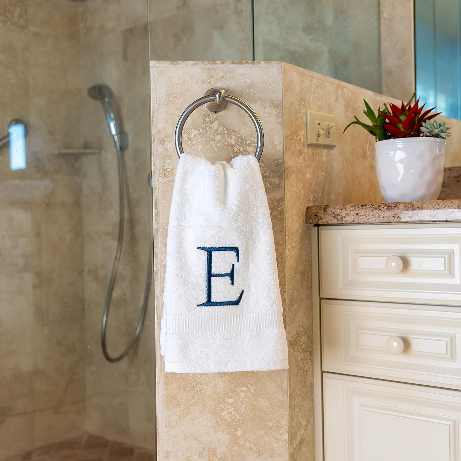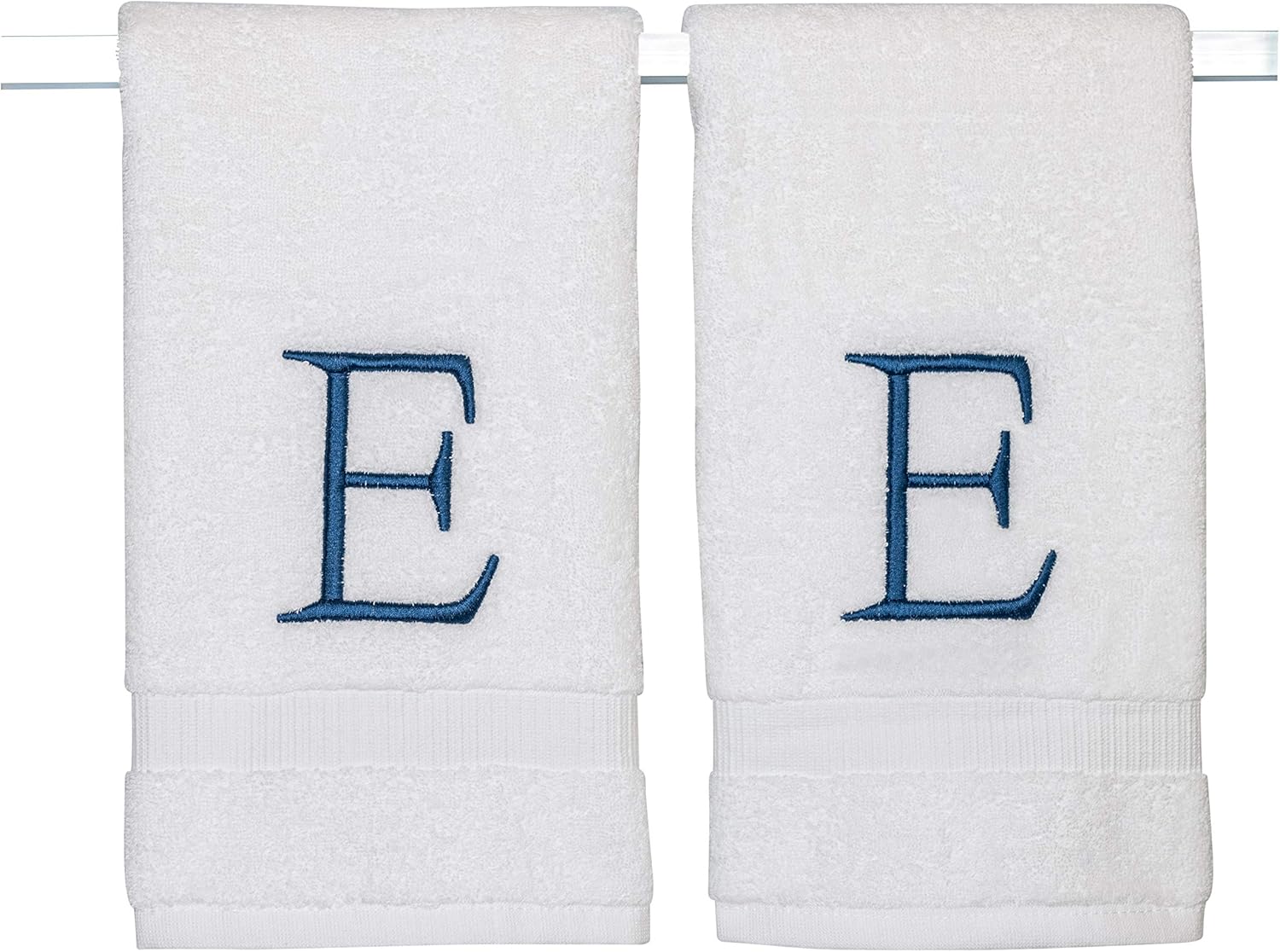 - Premium Quality - High quality durable soft rich monogram letter hand towels in white cotton with navy blue stitching