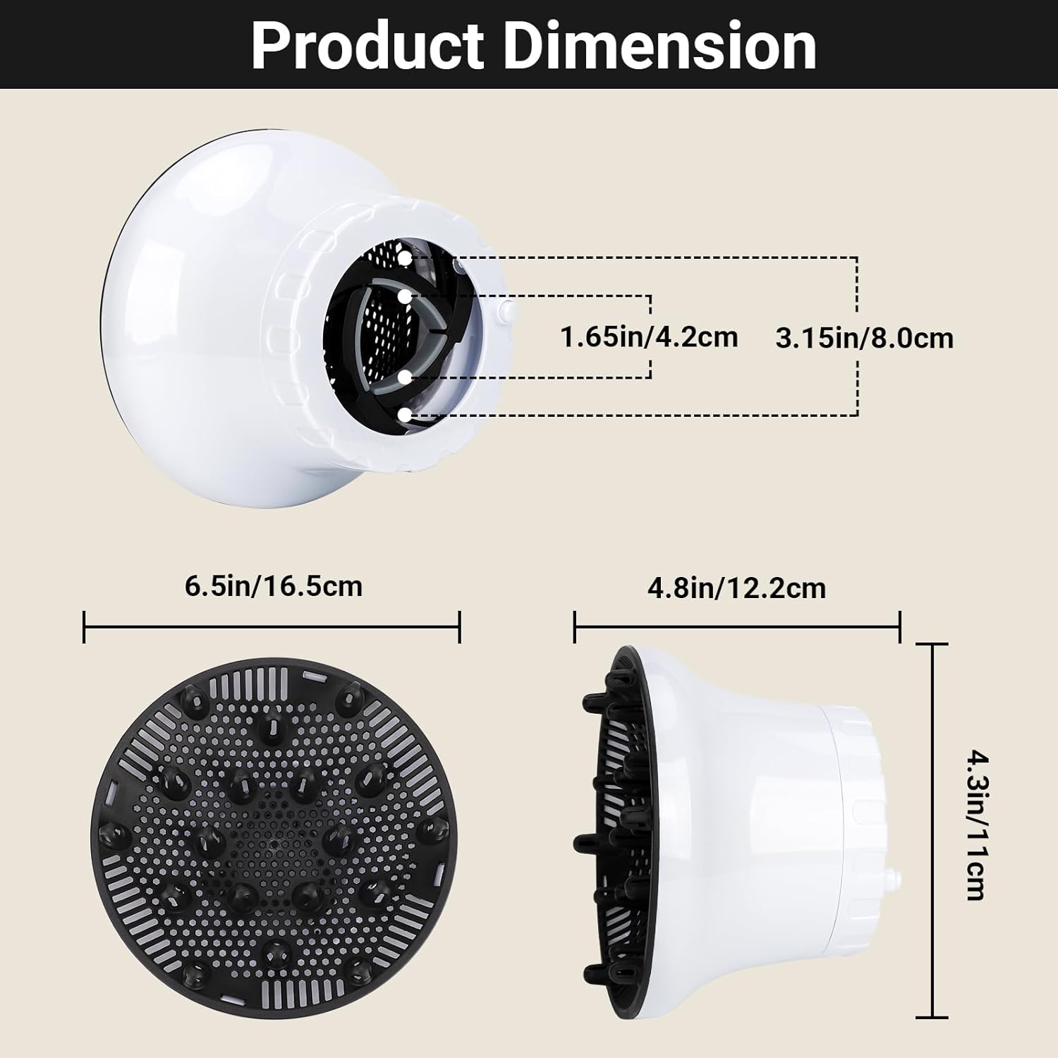 - 【Universal Diffsuer Fits Most Dryer】For 1.65-3.15inch/4.2-8cm Nozzle. This diffuser has a rotary locking mechanism that enables you to adjust its opening to fit any dryers that you have.