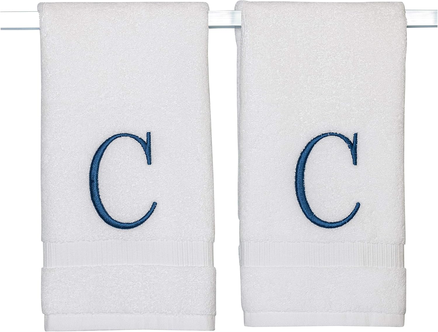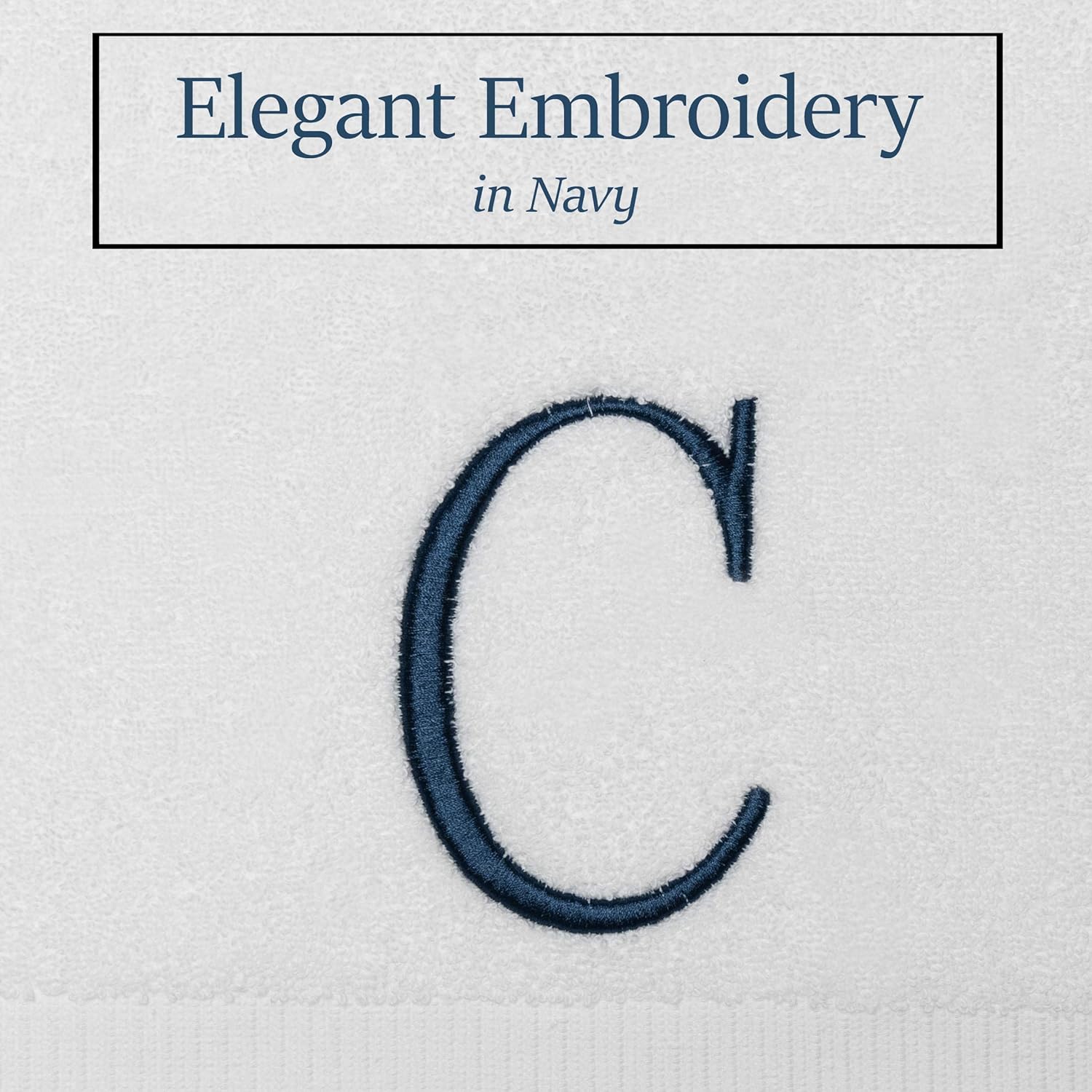 - Premium Quality - High quality durable soft rich monogram letter hand towels in white cotton with navy blue stitching