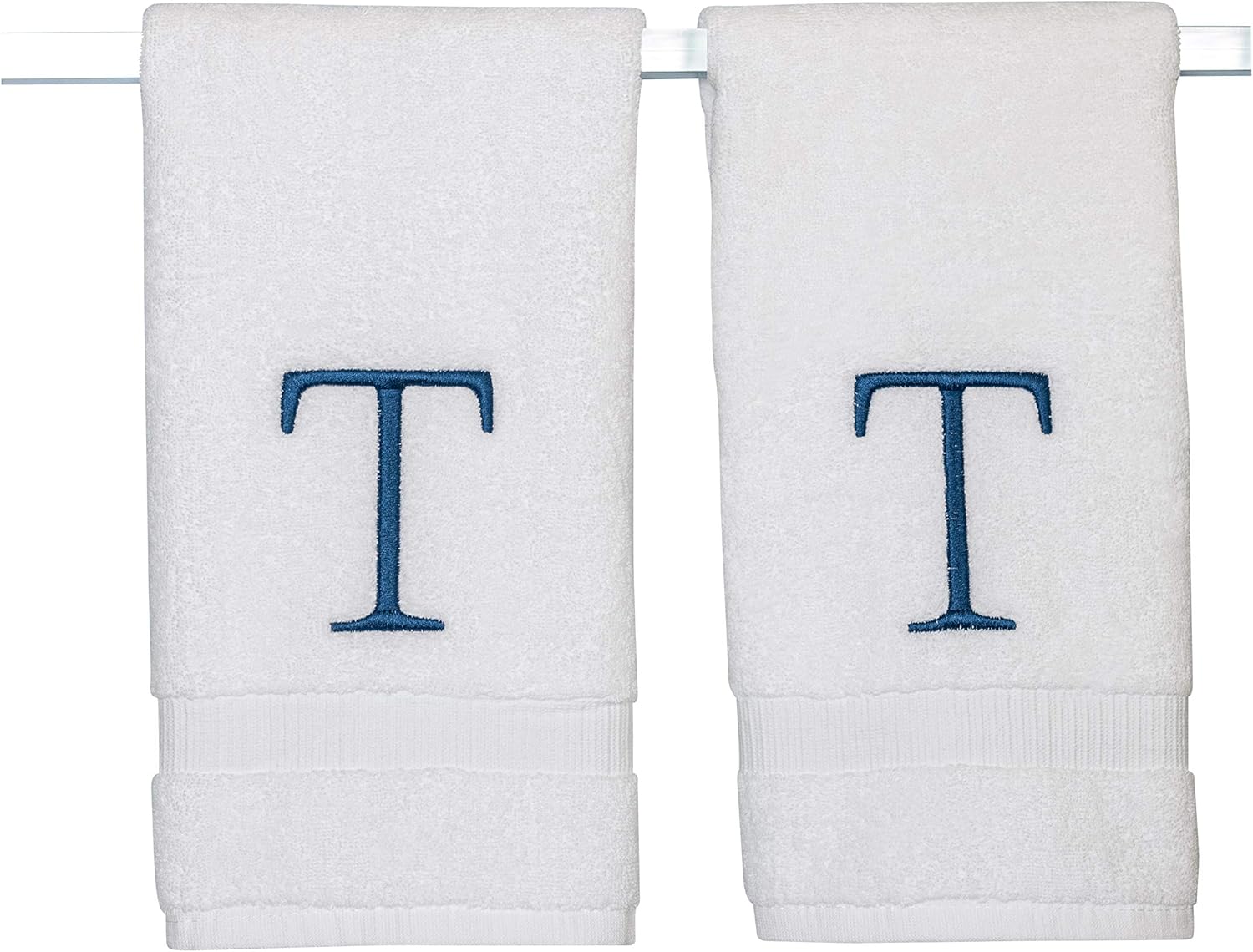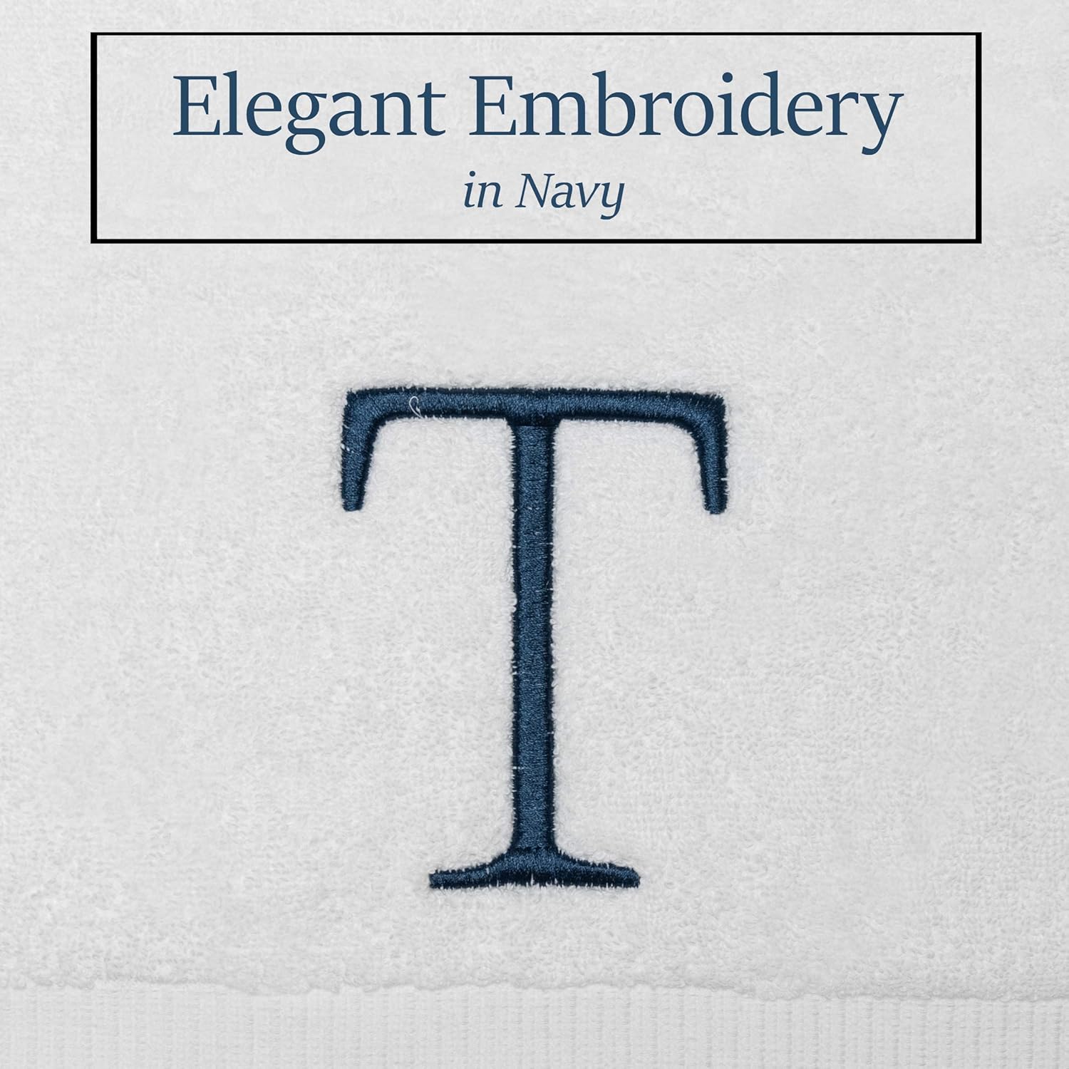 - Premium Quality - High quality durable soft rich monogram letter hand towels in white cotton with navy blue stitching