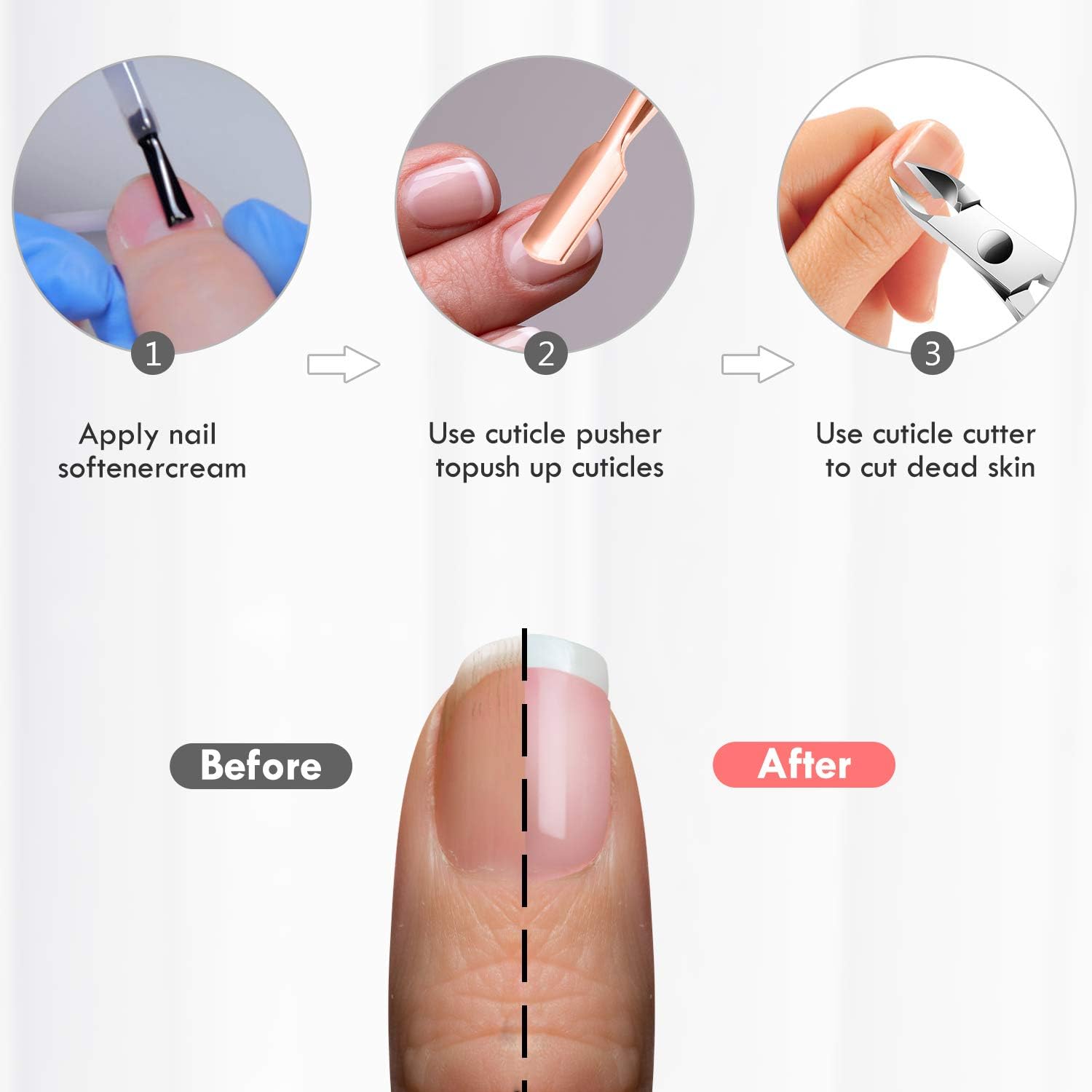 - Upgraded Polished Stainless Steel Materal -- The cuticle trimmer and cuticle pusher cutter are made of polished stainless steel, Which makes them sharper, more efficient and durable, easy to clean. They will give you a nice experience for a long time.