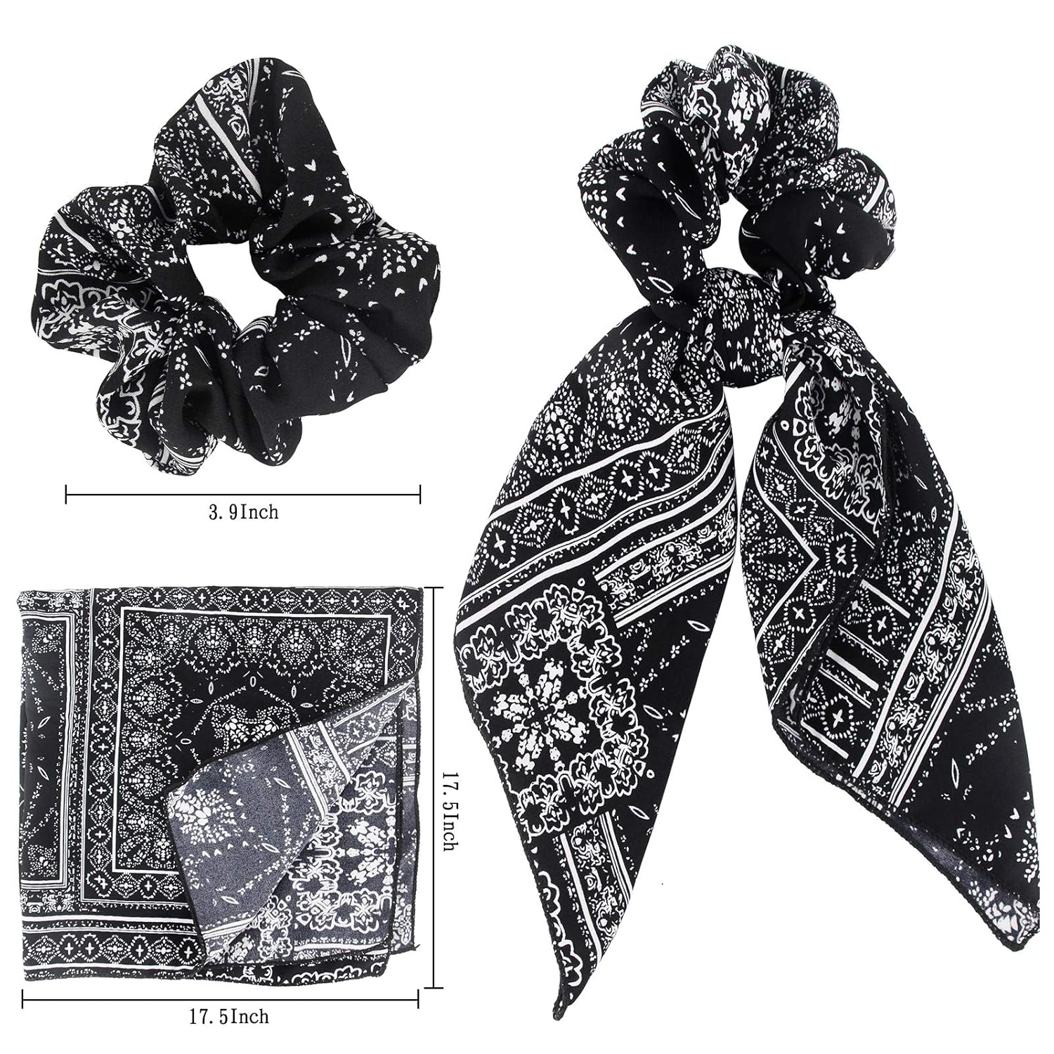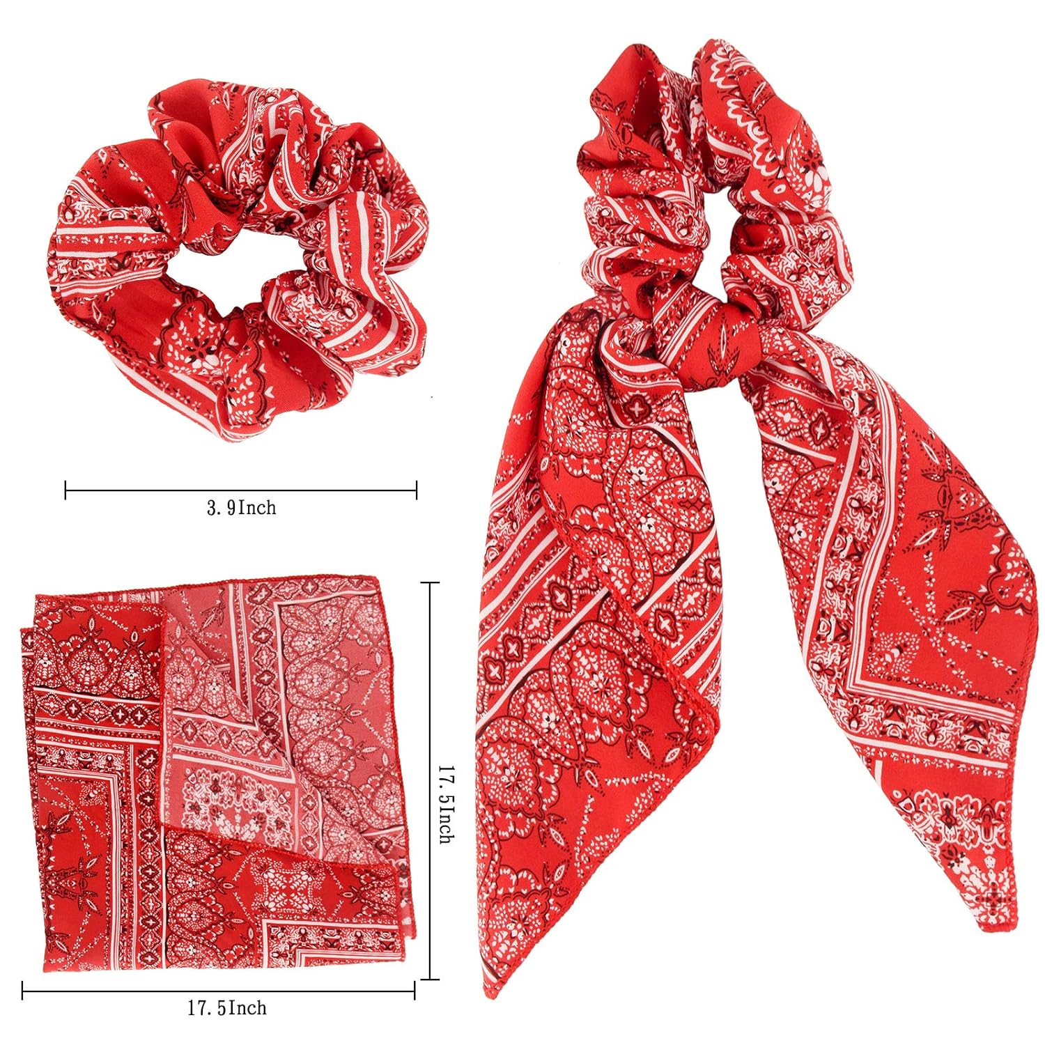 Hair Scarf Ties Ponytail with 6PCS Scarf-Scrunchies, Paisley Flower Printing, Chiffon Material, for Women Girls, Hair Accessories