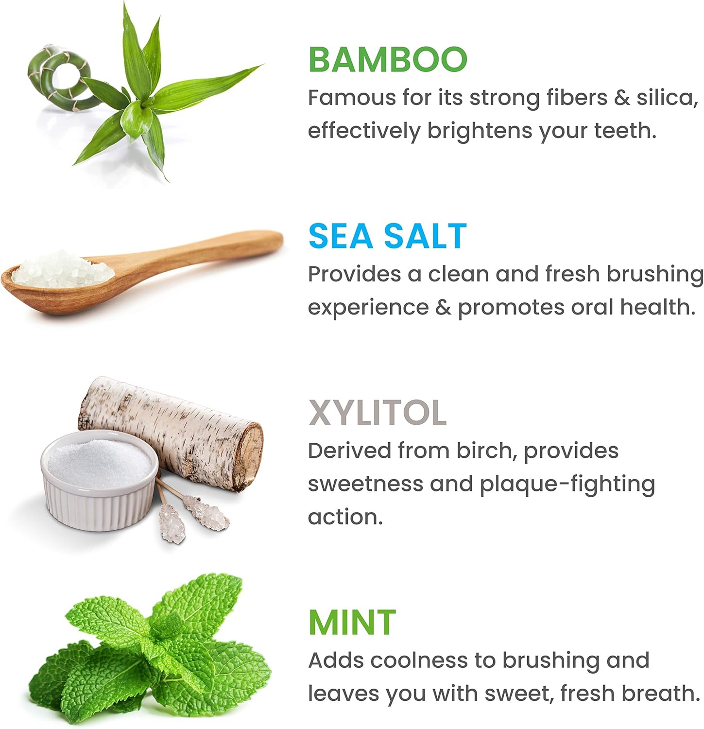 - UNIQUE CLEANING AND PLAQUE FIGHTING INGREDIENTS: Refine your smile with gentle Bamboo, famous for its strong fibers and silica. Then infuse your brushing with purified sea salt for a clean, fresh mouth and healthy-looking gums.