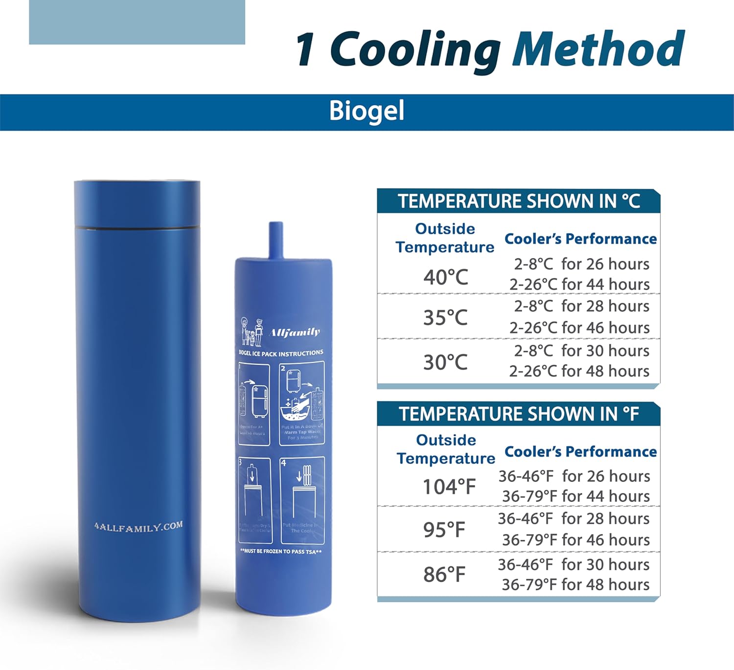 - ADVANCED BIOGEL TECHNOLOGY: Eliminate melted water packs & frozen meds, our Biogel freezes at 36°F to keep a stable range, protecting medicine from damage; this medicine cooler for travel TSA approved design is reusable and practical