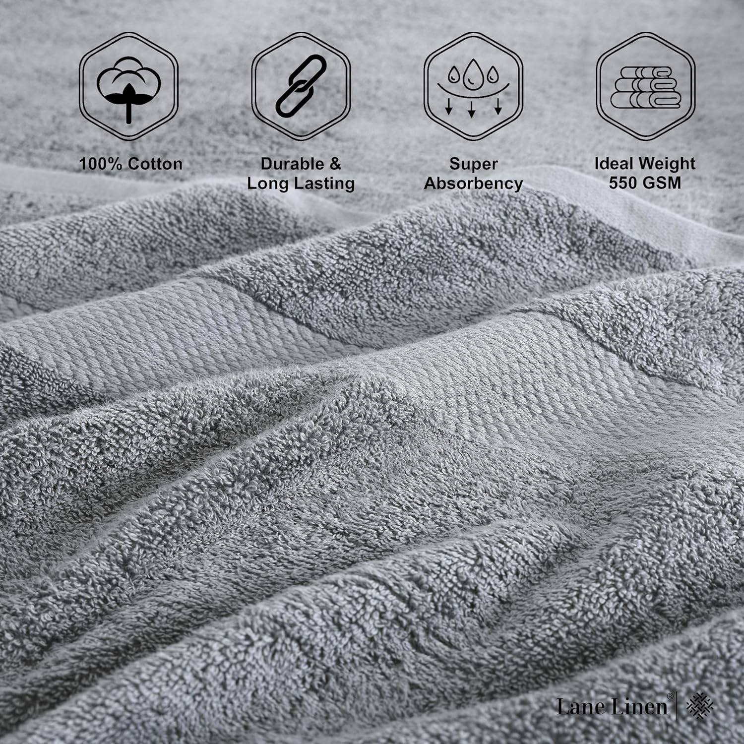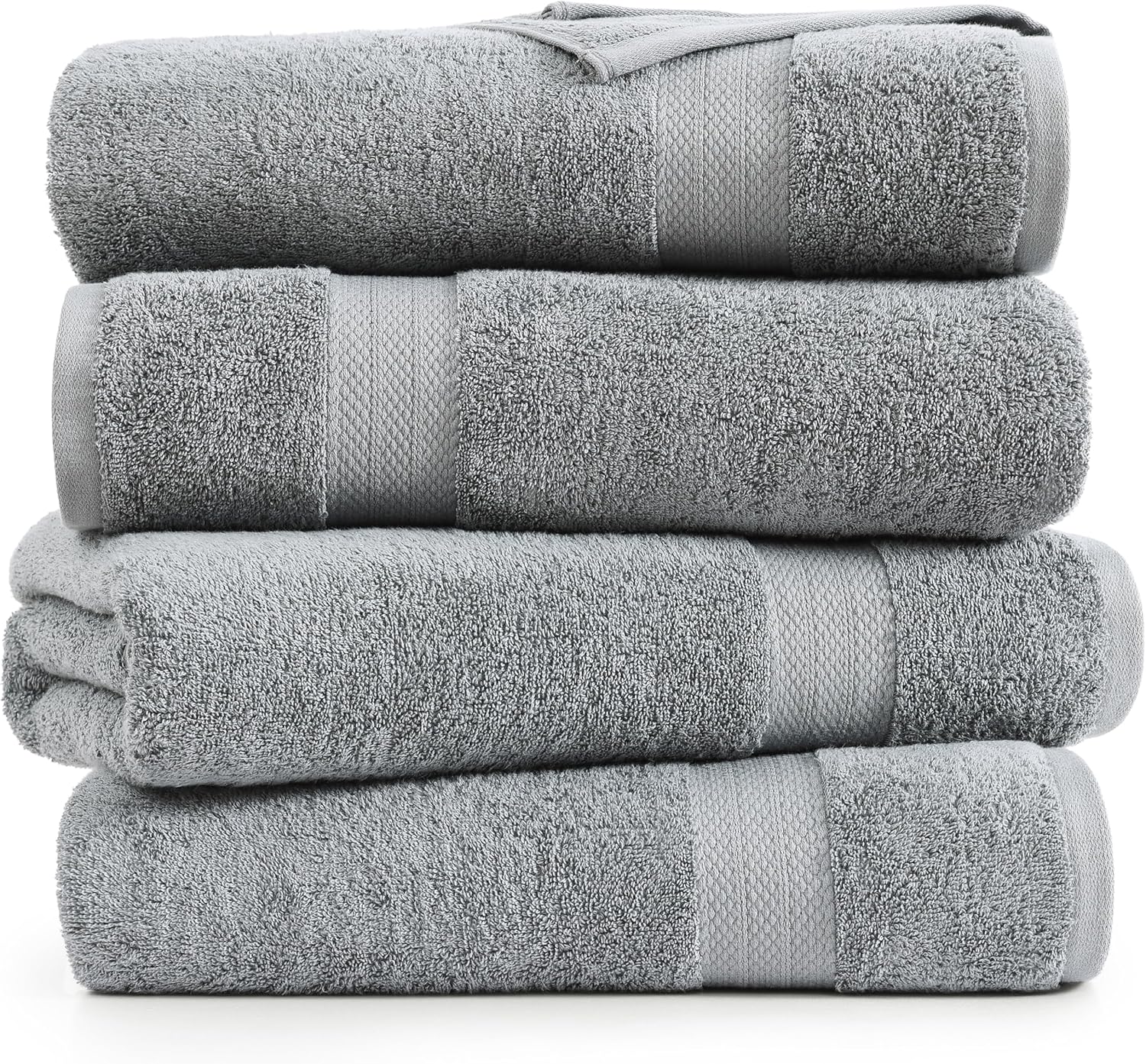 LANE LINEN 100% Cotton Bath Towels Set of 4 (28"x54") - Ring Spun Mercerized Cotton Extra Large Bathroom Towel Sets - Quick Dry, Soft & Absorbent Grey Towels Set - Pre Shrunk, Fade Resistant - Grey
