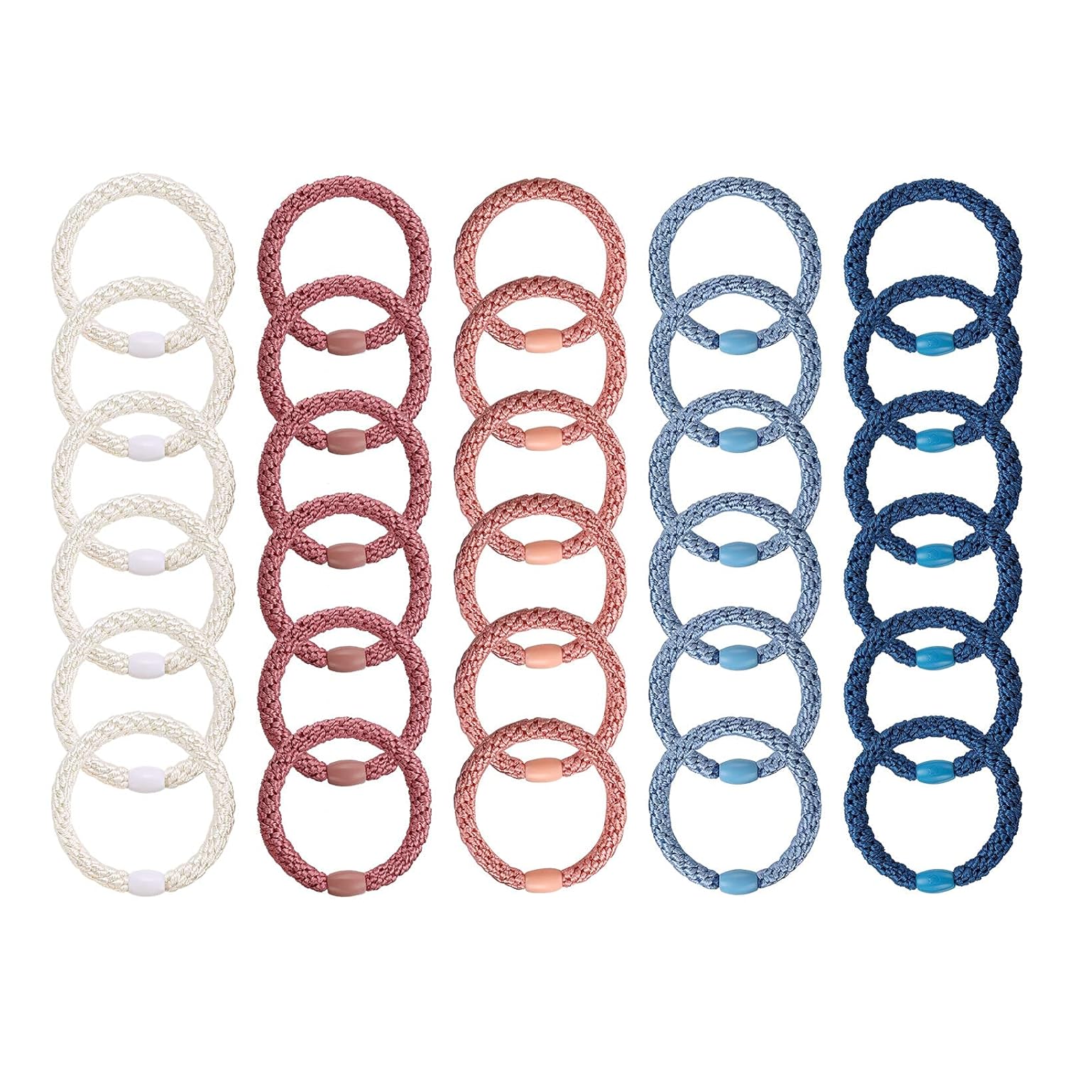 Hair Ties for Girls Women, Funtopia 30 Pcs Elastics Hair Bands Ponytail Holders for Thick Hair, No Damage No Crease Hair Elastics 3.Multicolor