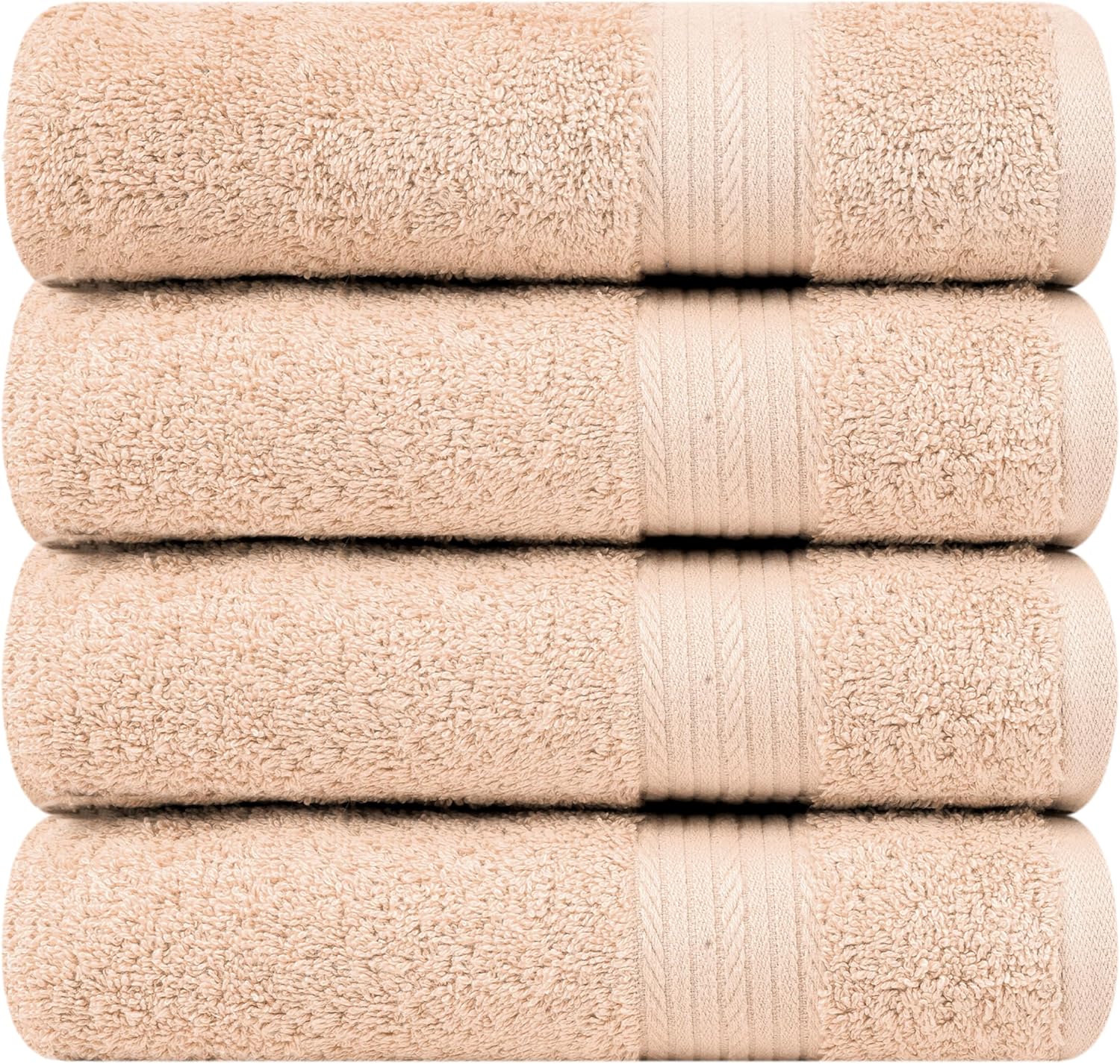 Ample Decor Hand Towel 18 X 28 Inch Pack of 4, 600 GSM, 100% Cotton, Oeko Tex Certified, Beige