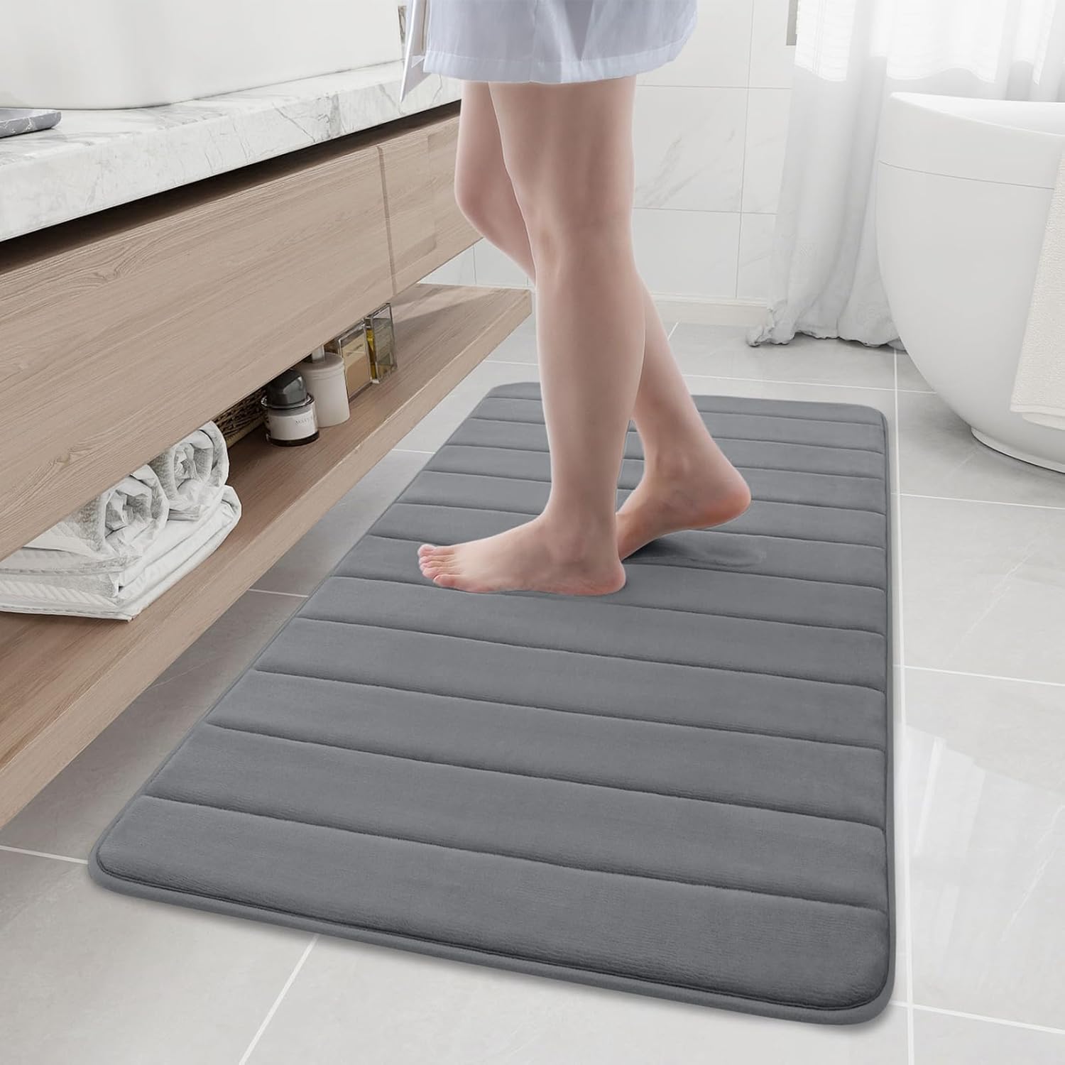 Buganda Memory Foam Bath Mat, 47" x 24", Ultra Soft and Non-Slip Bathroom Rugs, Water Absorbent and Machine Washable Bath Rug Runner for Bathroom, Shower, and Tub, Grey