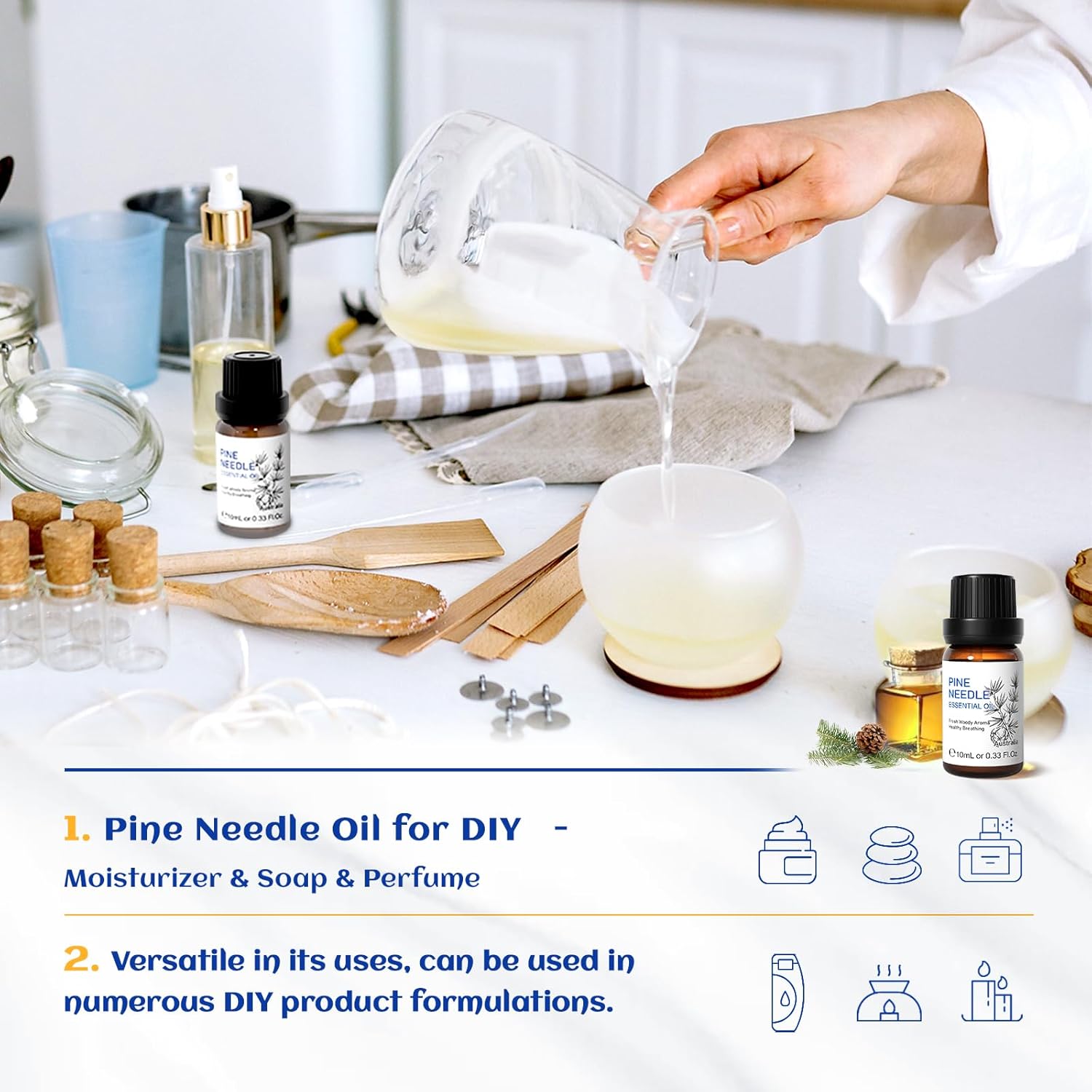 - DIY: Add pine oil essential to homemade cleaning products, Christmas tree, conditioners, shampoos, massage oils, diffusers, cleansers, moisturizer, wool dryer balls, sprays, laundry detergents, cleaners, body lotions, creams, bath salts. Also DIY candles, perfumes, soaps, bath bombs