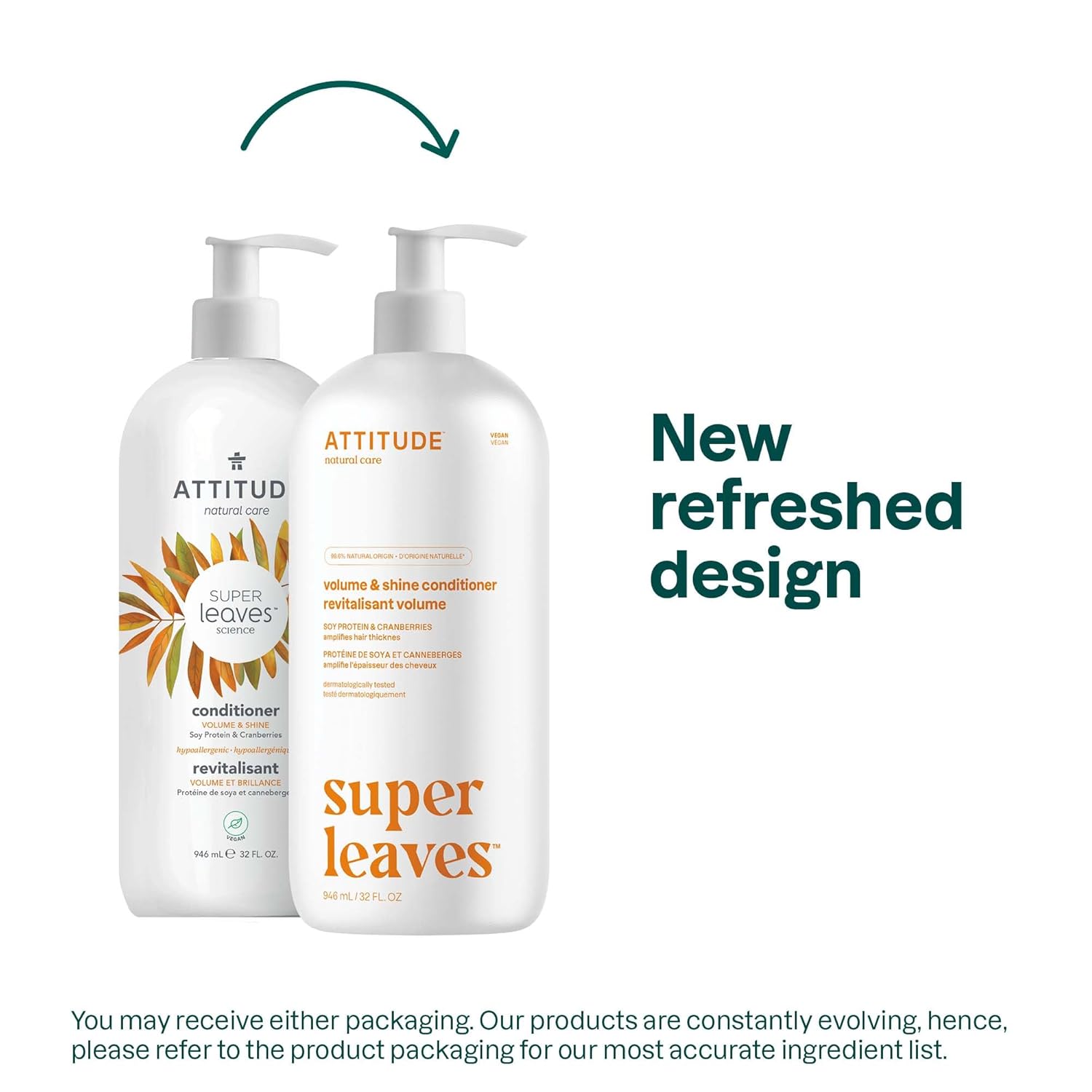 ATTITUDE Volume and Shine Hair Conditioner, For Thin Hair, Naturally Derived Ingredients, Vegan Detangler, Dermatologically Tested, Soy Protein & Cranberries, 32 Fl Oz