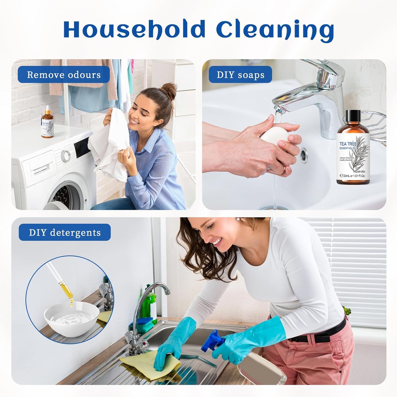 - Ingredient & Aroma: Our raw materials are sourced from Australia and extracted using the traditional steam distillation method. Tea Tree essential oil has a fresh, slightly herbaceous aroma and a sweet, refreshing sensation