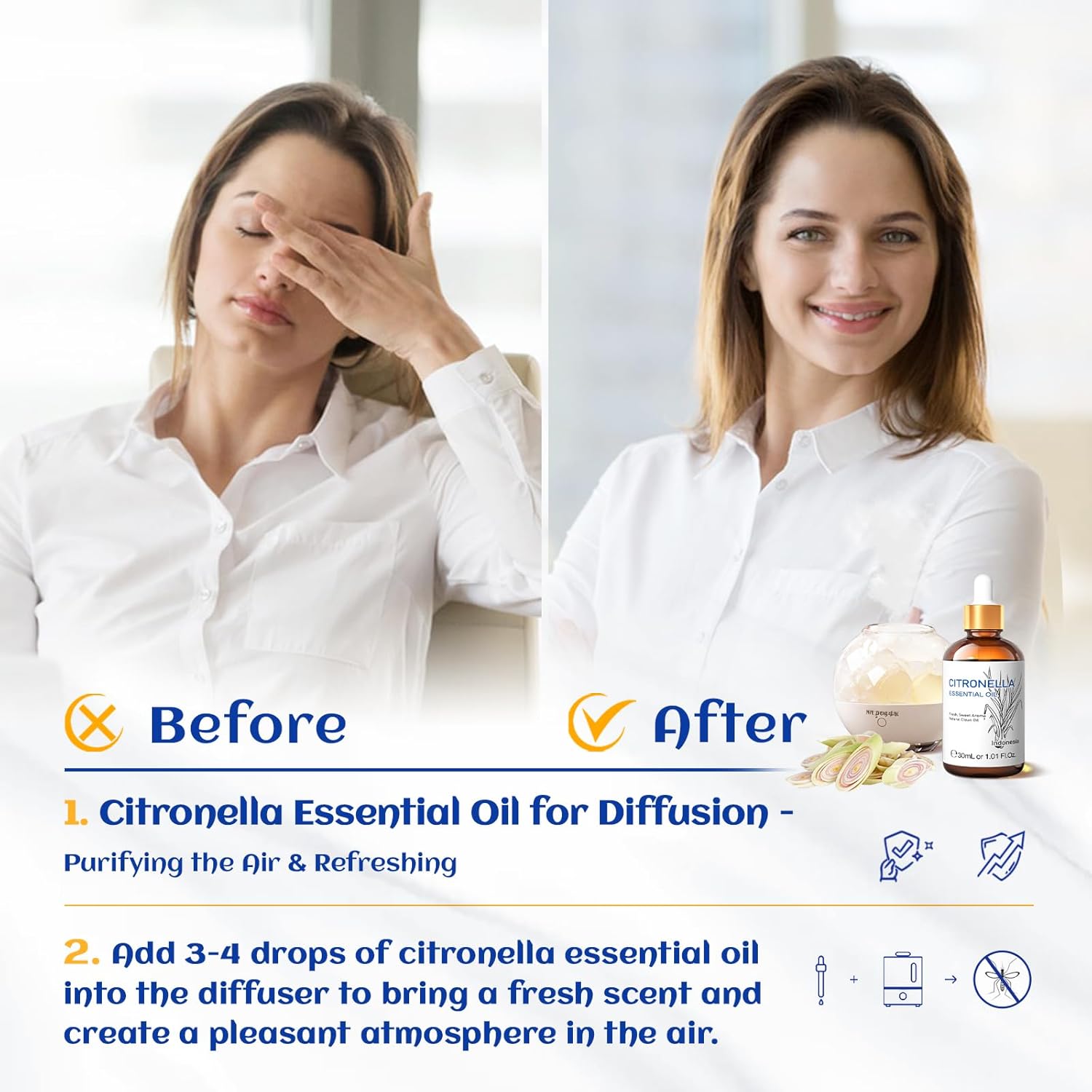 - Natural and Pure: 100% pure citronella essential oil, sourced from the premium citronella plant, contains no additives or diluents and retains the plant's natural components and properties