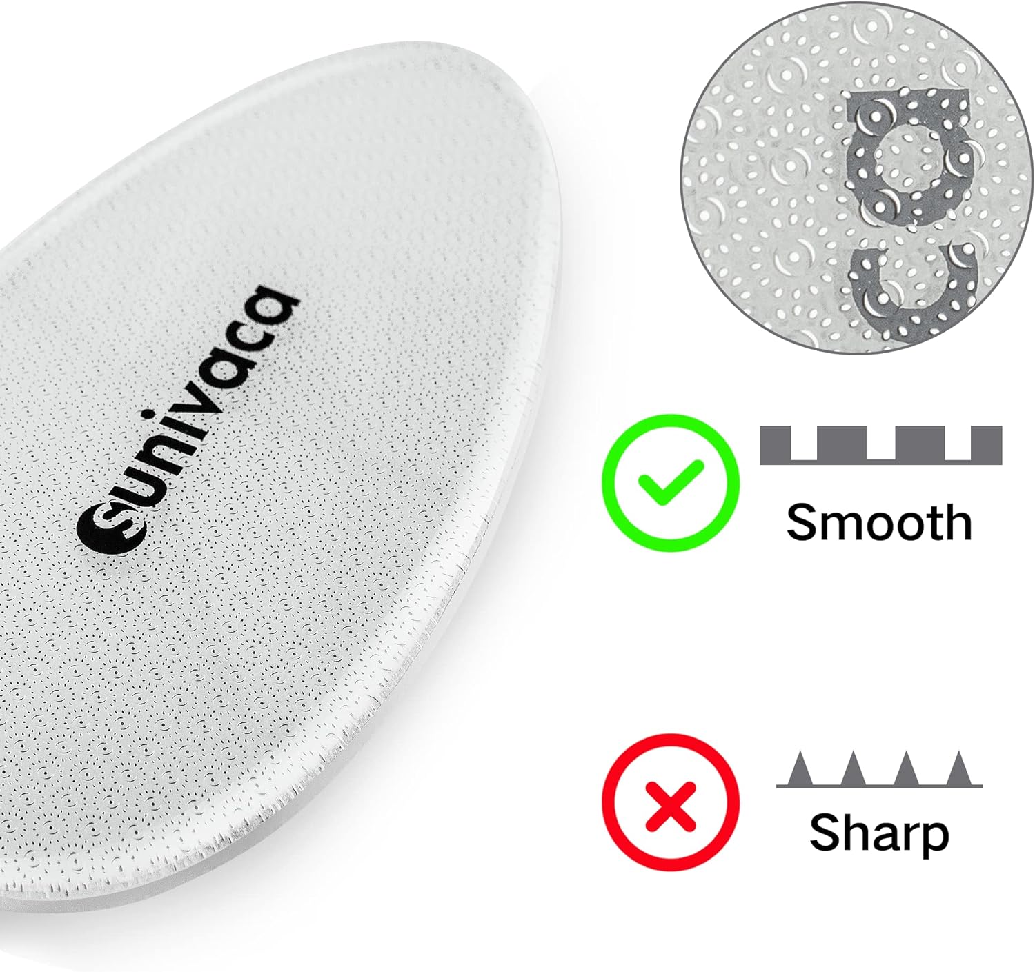 - The nano points can be rubbed thousands of times and maintain sharp. Glass Foot File is no need to charge and replace refills like electric foot callus remover. And it is slim enough to put in your travel bag.
