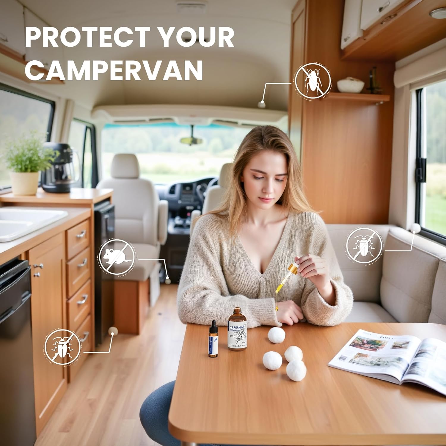 - For Camping Solution: Enhance camping comfort by placing peppermint-oil-soaked cotton balls in caravan corners and storage areas for natural space protection