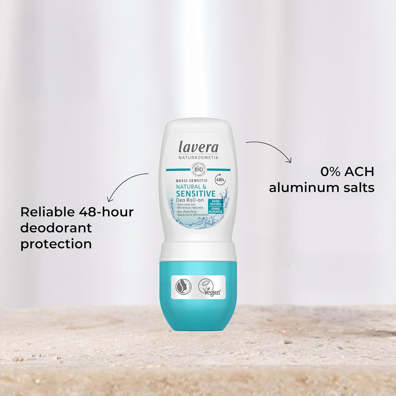 lavera Deo Roll-On Basis sensitiv Natural & Sensitive NATURAL & SENSITIVE 48h - vegan - natural cosmetics - organic aloe vera & natural minerals - without aluminum - 48h protection - 1.7 Fl Oz