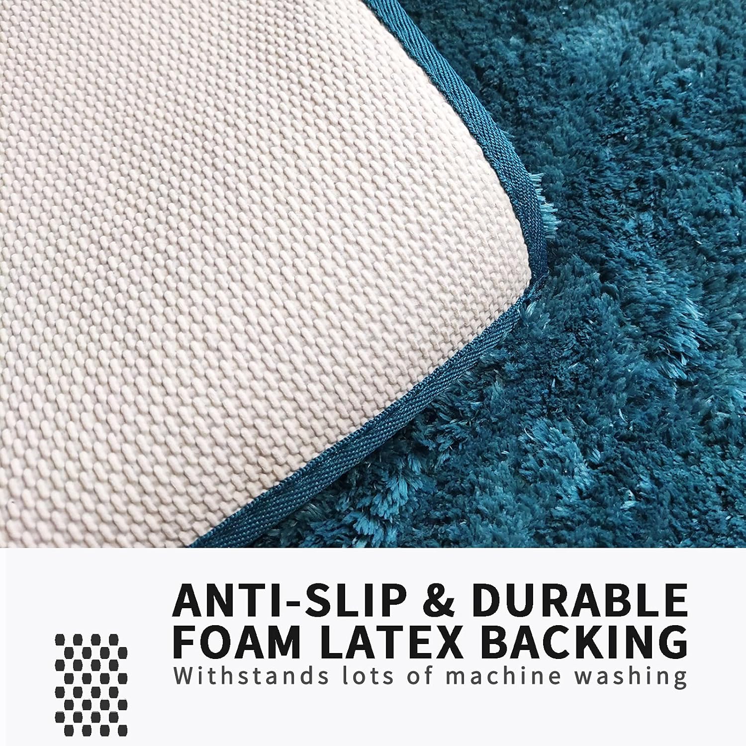 - SKID RESISTANT BACKING - FIFU bath mats features foam latex non-slip backing that has a strong grip on the floor. Foam Latex backing withstands loads of wash, more durable than TPR or PVC backing Comfortable to stand WARNING – Always place rug on CLEAN SMOOTH DRY surface only. Water under the rug can cause it to slip. Keep bottom of rug dry.