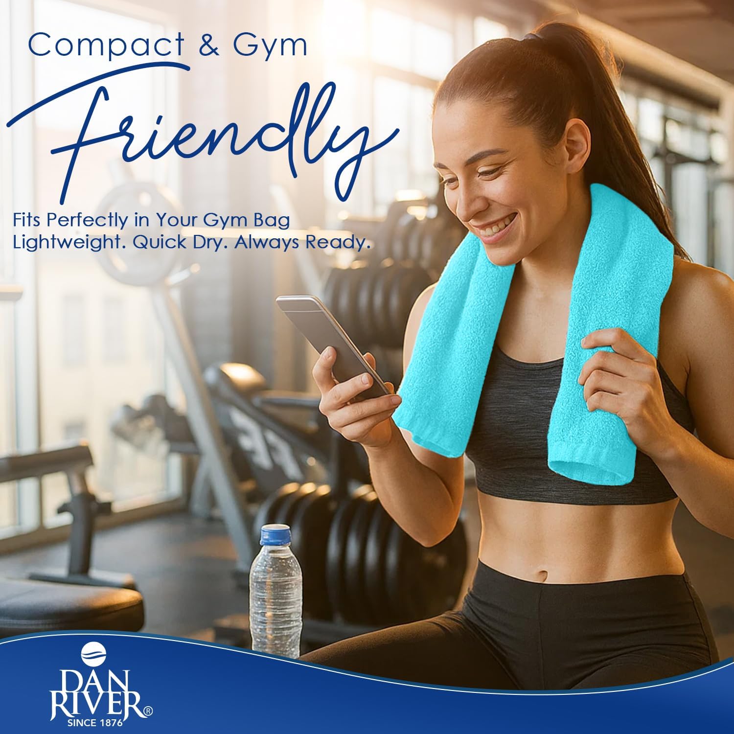 DAN RIVER 6-Pack Premium Hand Towels (16x28 Inches) - 100% Cotton, Ultra Soft, Lightweight, Highly Absorbent Towels for Bathroom, Spa, Gym, Salon, Hotel, and Travel - 550 GSM โ Turquoise
