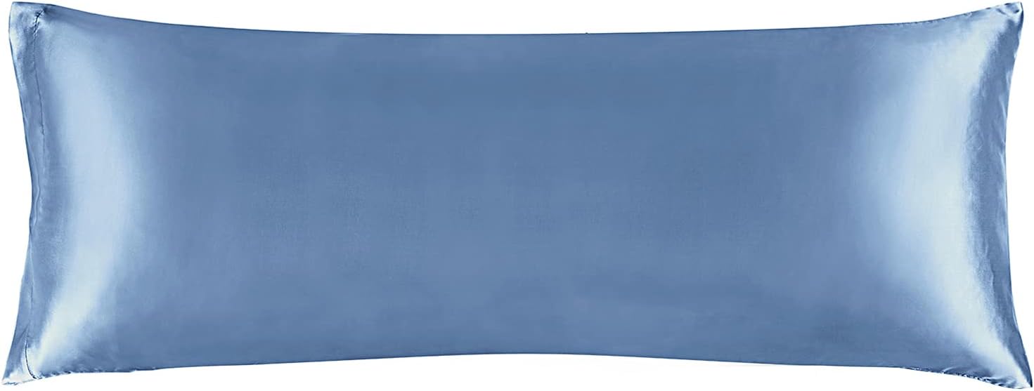BEDELITE Satin Body Pillow Cover, Super Soft and Cooling Body Pillow Pillowcase for Hair and Skin, Breathable Silky Full Long Pillowcase Cover(20"x54", Airy Blue)