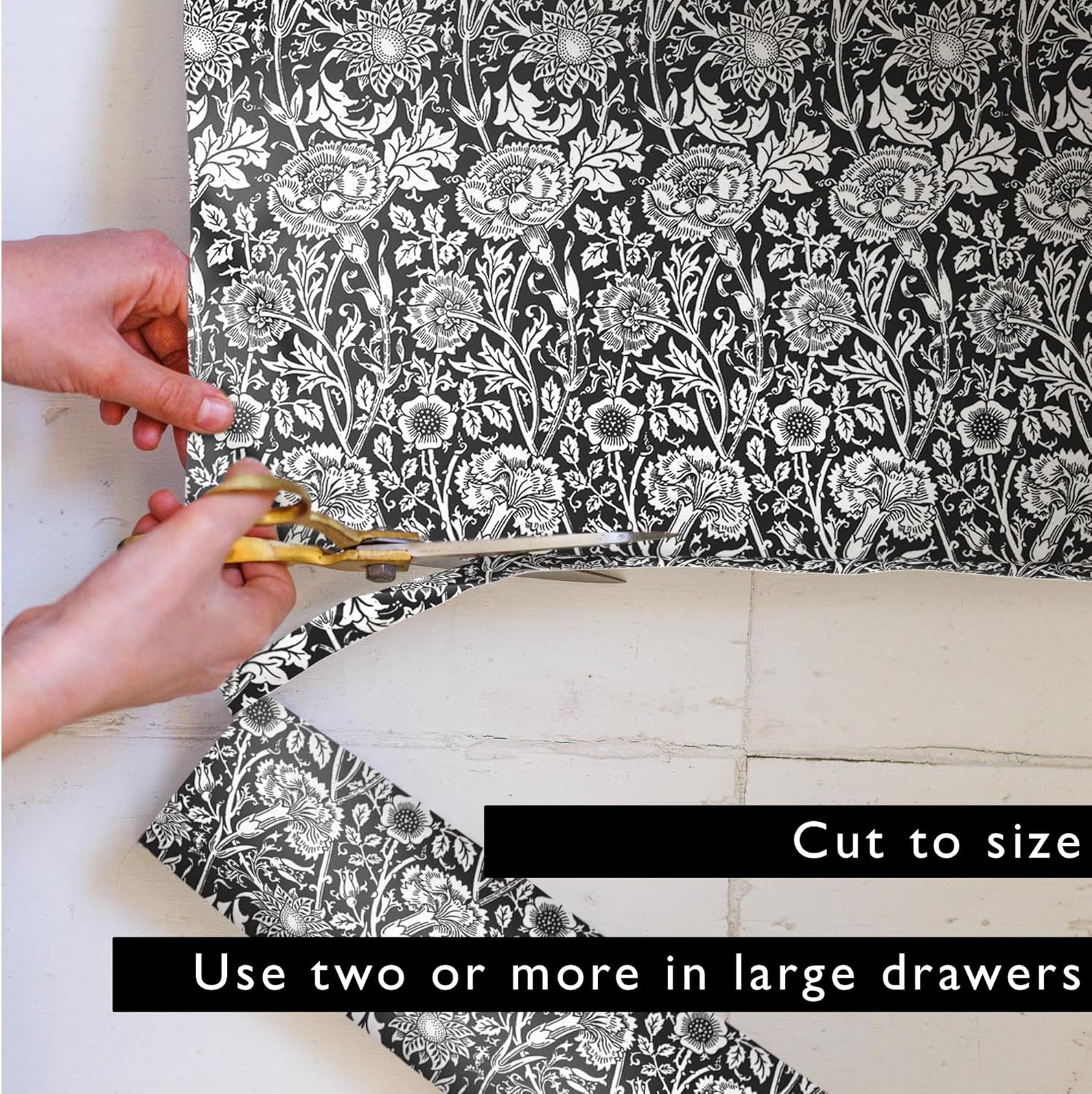 Sandalwood Scented Drawer Liners in a Black William Morris Design. Pack of 5 Folded Sheets | Contains Sandalwood Essential Oil | Made in The UK.