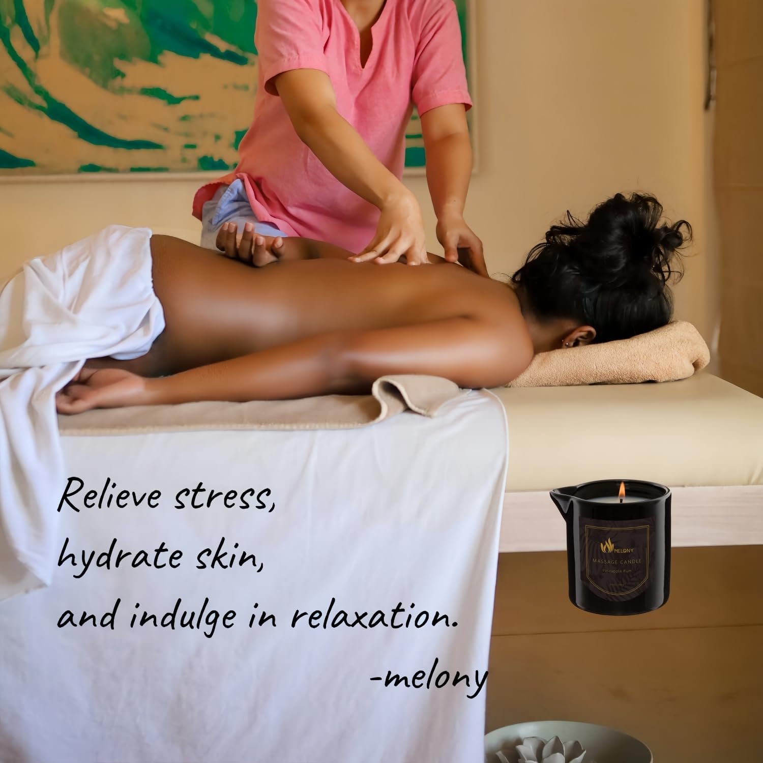 - MOISTURIZING MASSAGE OIL FOR HOME SPA - 4-in-1 Massage Candle,Scented Candle, Massage Oil, Moisturizing Lotion and Body Oil Balm in One. Ultra-Moisturizing Formula: Keep your skin hydrated, nourished and super soft with this treatment candle. Essential oil absorption after massage is not greasy. Naturally nourishing your skin for a 24 hours long-lasting treatment. Massage deeply to intensively nourish and hydrate the skin.