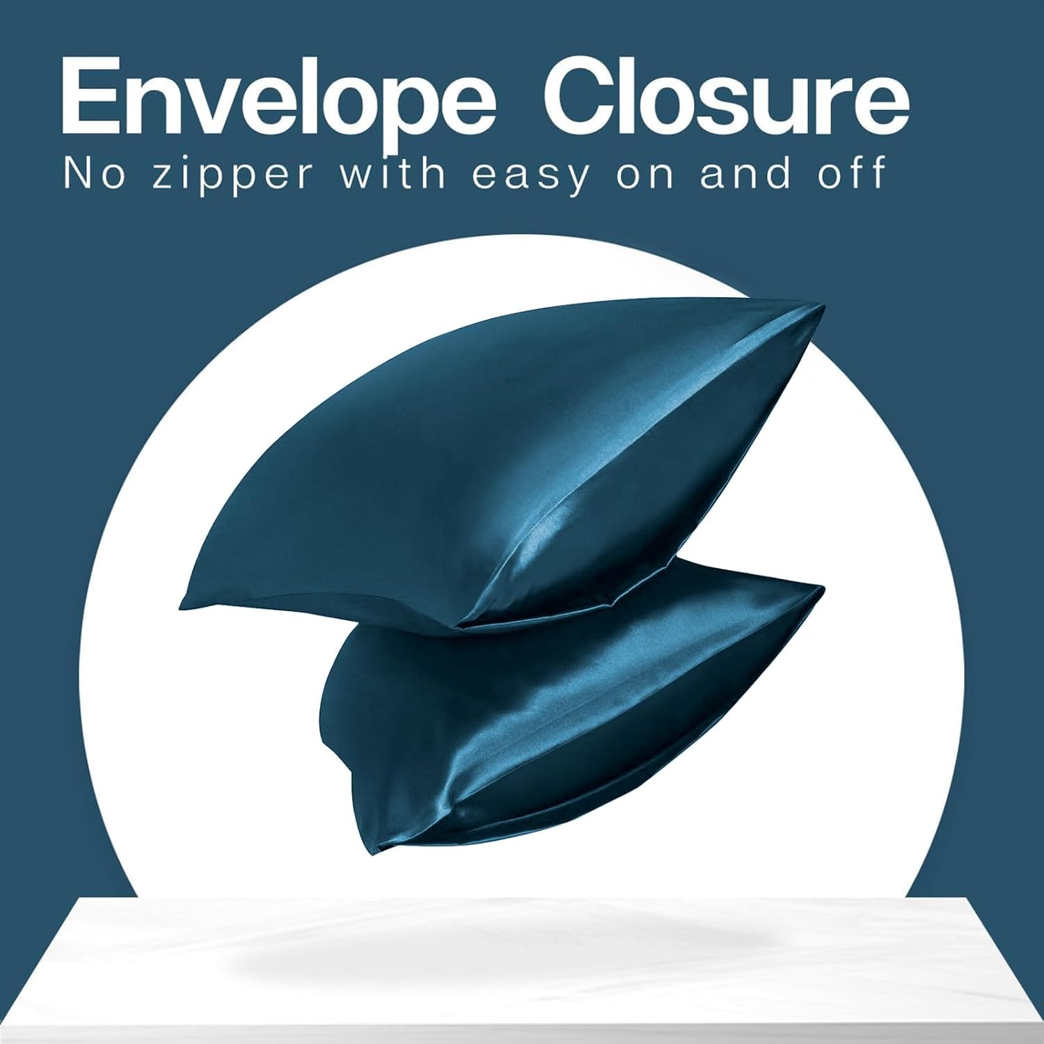 MR&HM Satin Pillowcase for Hair and Skin, Silk Satin Pillowcase 2 Pack, King Size Pillow Cases Set of 2, Silky Pillow Cover with Envelope Closure (20x36, Teal)