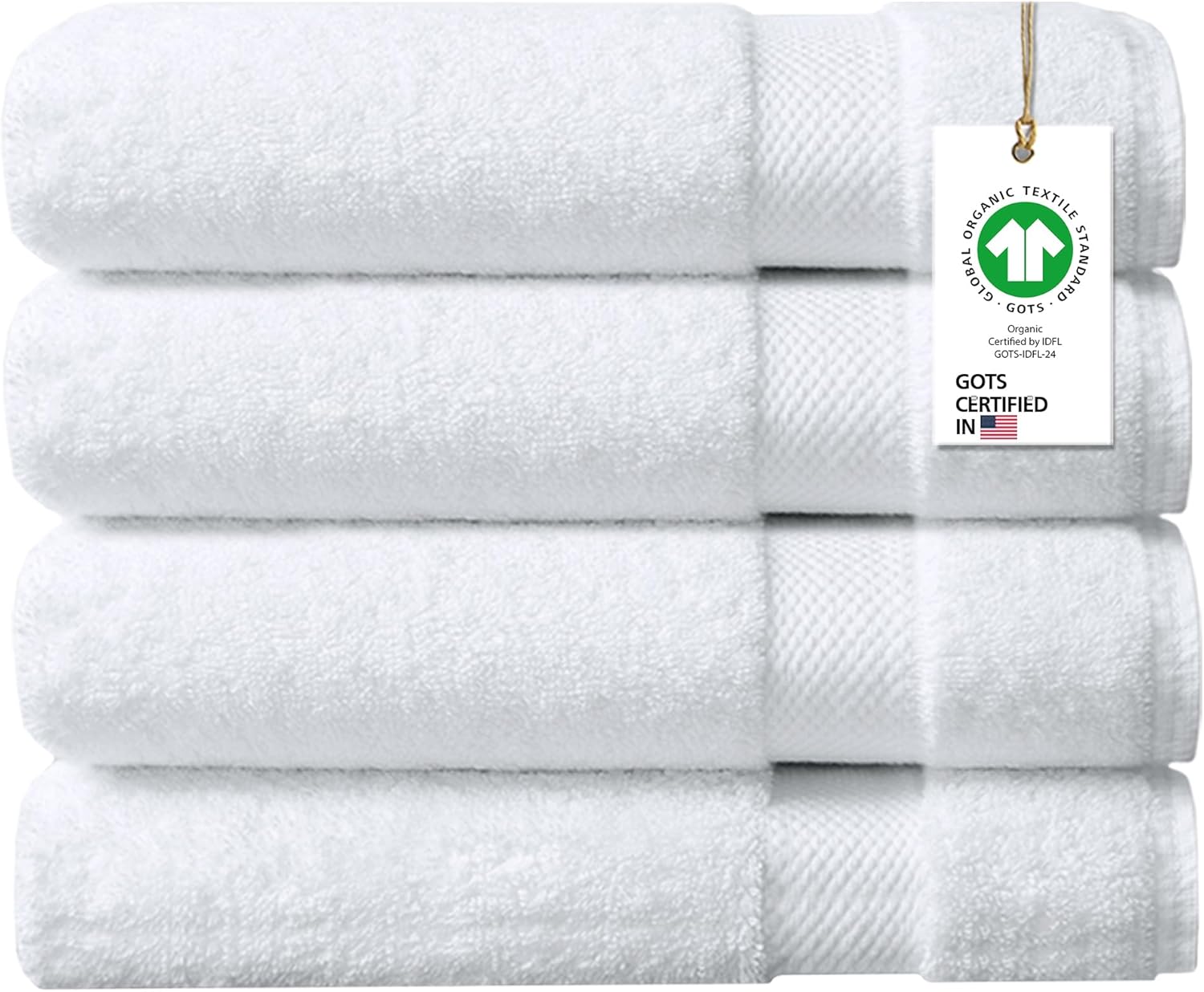 Delara 100% Organic Cotton Towels 650 GSM Plush Feather Touch Quick Dry Bath Towel, Pack of 4 GOTS Certified, Oeko-Tex Green Certified, Organic Cotton Bath Towel, 30"X58"
