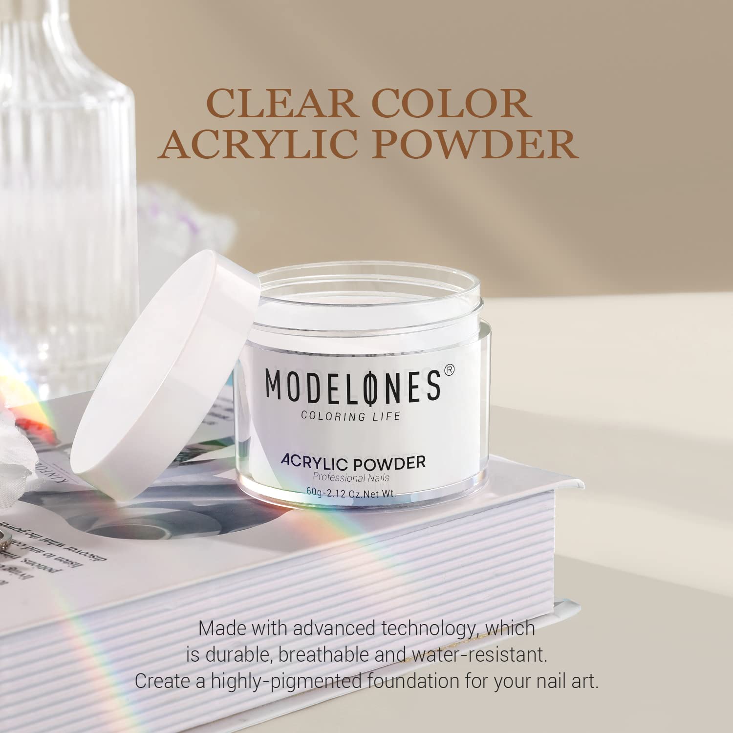 - 🌺30-DAY MONEY-BACK GUARANTEE: Ensures your satisfaction. If you are not delighted with this clear acrylic powder, return it for a 100% refund of your purchase price - no questions asked. MODELONES encourages the sharing of nail fun.
