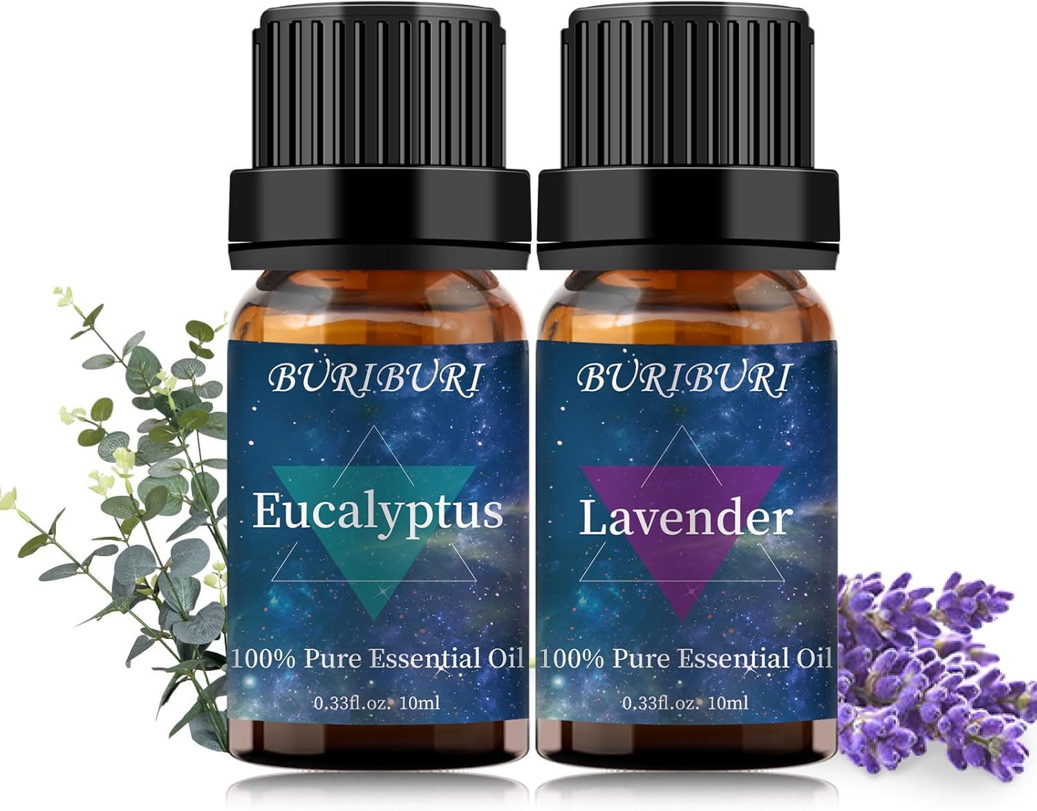 - Packing Includes: 10ml Lavender Oil Essential Oil (Lavandula angustifolia)x1, 10ml Eucalyptus Oil Essential Oil(Eucalyptus Globulus)x1. With no adulterants or dilution, 100% pure quality. BURIBURI scented oil is bottled in a durable amber glass bottle.