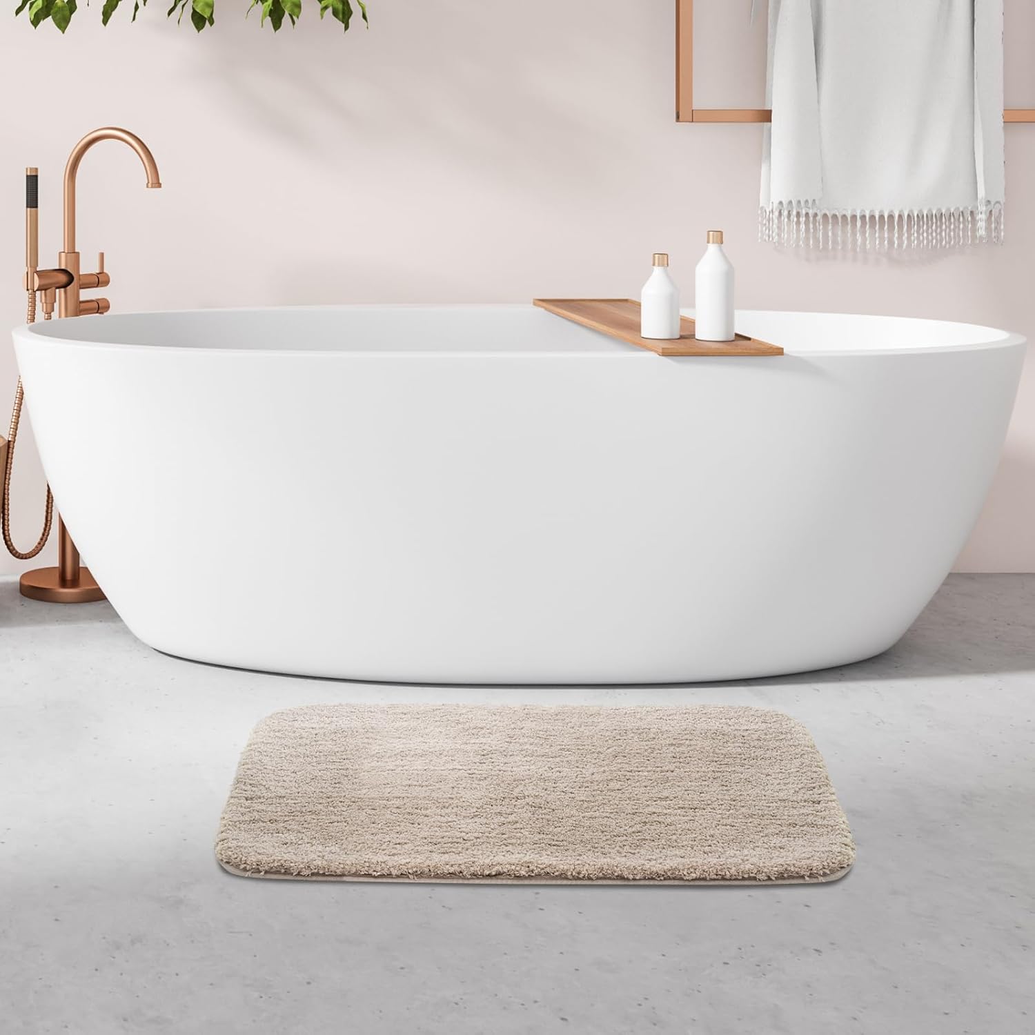 ROSMARUS Shaggy Bath Rugs for Bathroom Non Slip 24" X 36", Water Absorbent Bath Mat, Soft Shower Mat for Floor & Tub, Fluffy Plush Machine Washable, Beige