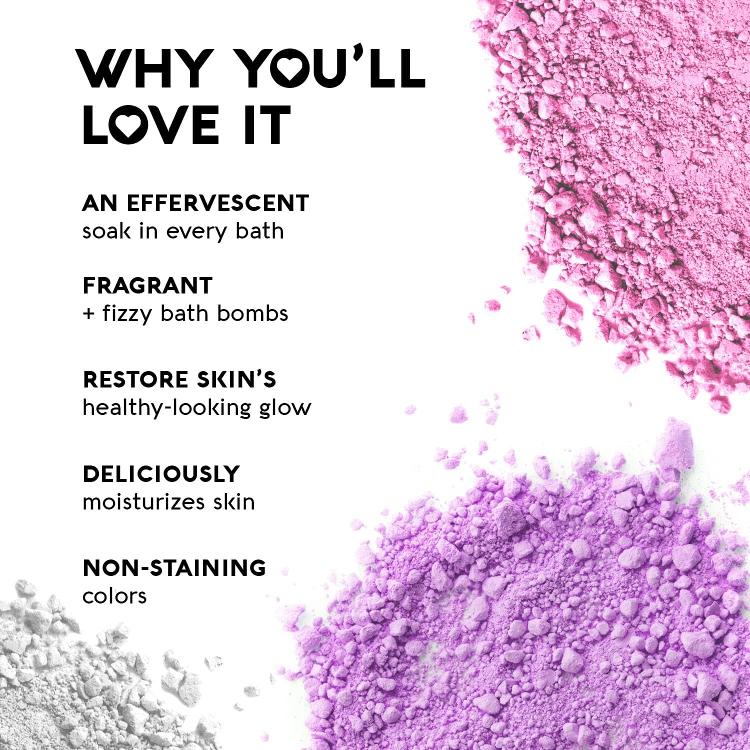 - Clean Formula: Vegan and cruelty-free bath bombs; free from parabens, sulfates, phthalates, gluten, and petrochemicals