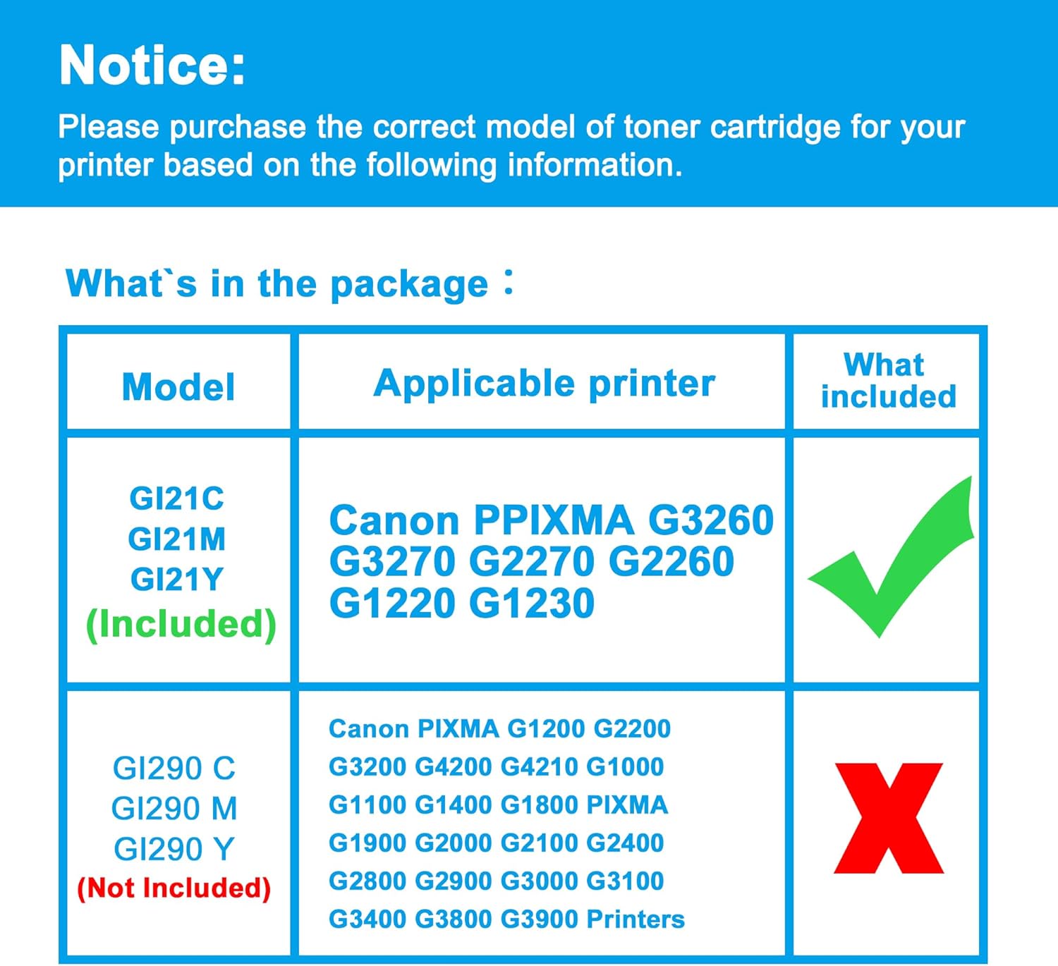 - Compatible Printers: Replacement for Canon PIXMA G3260 G3270 G2270 G2260 G1220 G1230